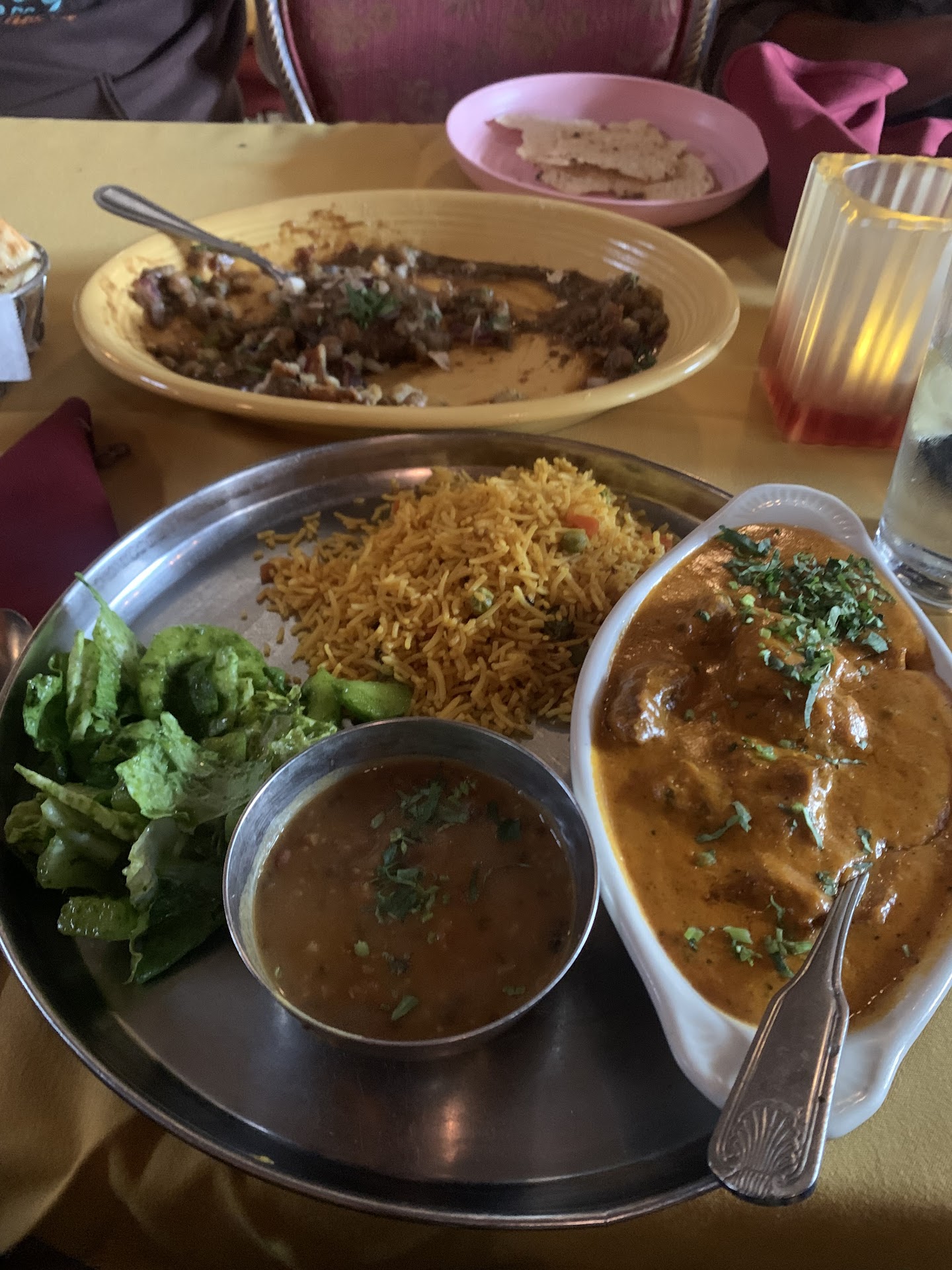 For my entrée, I ordered the Chicken Tikka Masala (spicy), served with Pullao rice, salad, lentil soup, and butter garlic cilantro naan. Every bite was bursting with flavor — the sauce was rich, creamy, and beautifully spiced, with just the right amount of heat. My wife ordered the Butter Chicken (medium), which came with the same sides and freshly made butter naan. She called it her favorite Indian restaurant she’s ever been to, and it’s easy to see why.