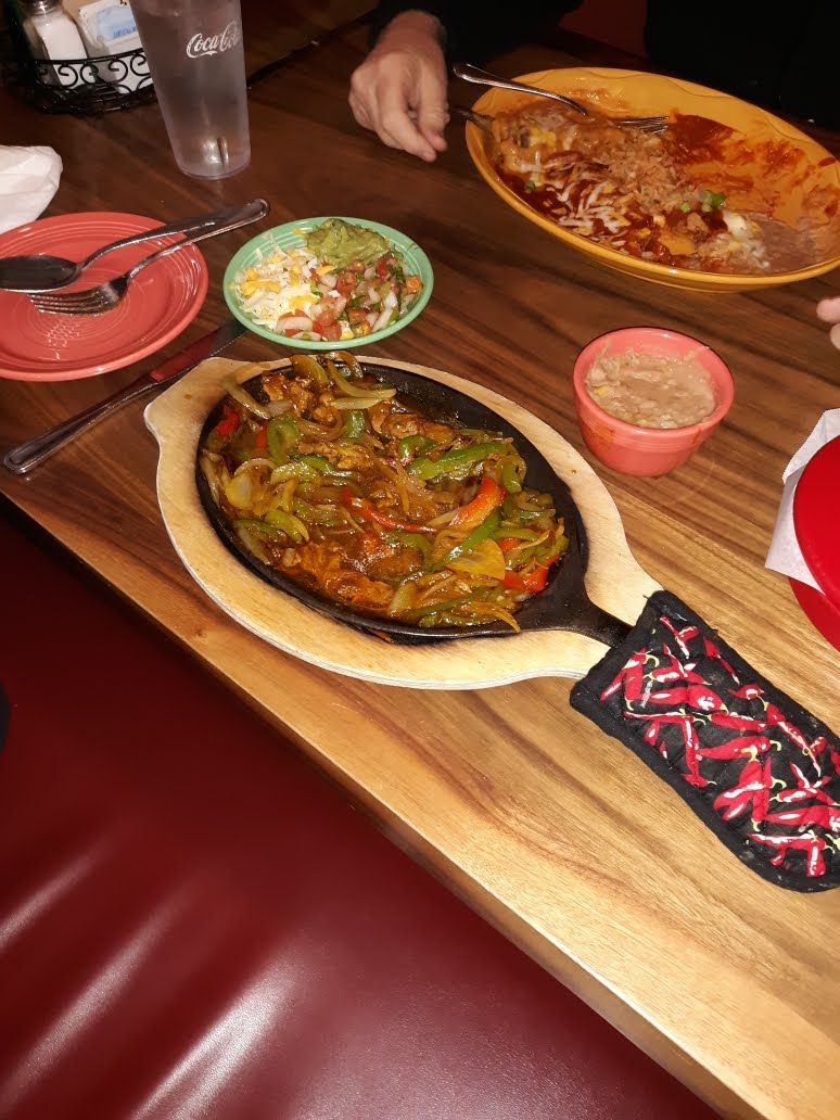 But this last visit I tried steak fajitas. What a mistake. It wasn’t sizzling. It looked like a saucy mess. Really, it looked like chop suey! The onions and bell peppers were way overcooked to tastelessness and soggy. I ate a couple bites and decided to just eat the rice, beans, guacamole, and tortillas, which were yummy.