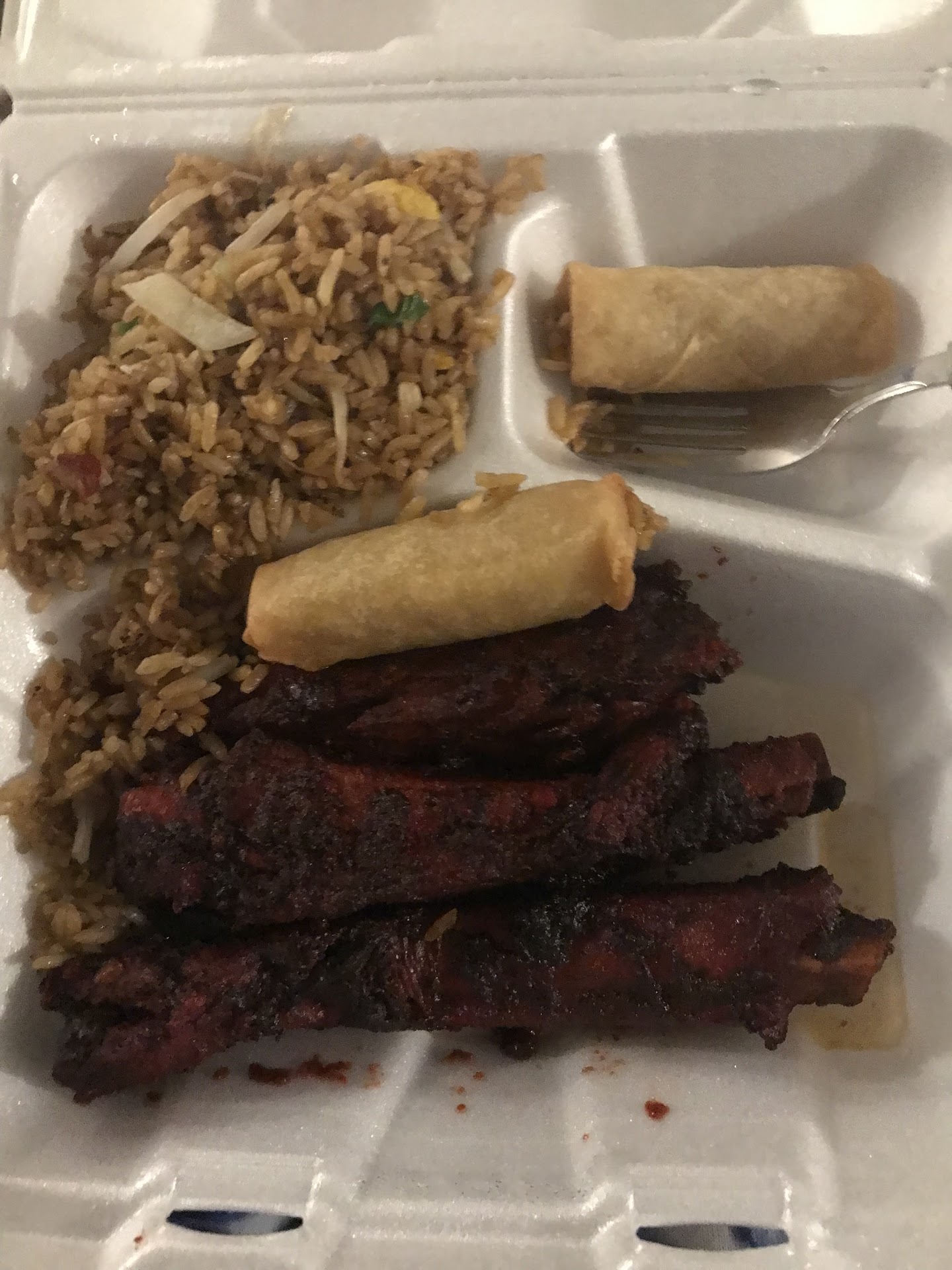 First: the food. The Egg Foo Young had a different gravy than I'm used to, but it was pretty good. The Egg Roll was smaller than most (long and thin) and the first two bites were nothing but roll. Again, it was tasty. The shrimp chips tasted different than I'm used to. Didn't taste like shrimp, but we're good. Only about 12 chips for $2.00 The house rice was the problem. When I opened the container, I was reminded of my dad's '70 AMC Hornet. . .and the ashtray within. The rice tasted smoky and I found several burned rice and some blackened green onions/shallots. Overall it's edible, but I won't enjoy it. The service: I stopped in a couple of days before and waited about 10 minutes, rang the bell for service twice while people twice came from the kitchen to hand over delivery orders and nobody said a word to me, so I left. Everybody has bad nights and they did seem busy. That's why I gave them another try today. They were very nice and polite to me today and on the phone. I have 5 Chinese restaurants within 5-15 minutes of my house, so I won't give these guys another try. As if to add insult to injury, the two fortune cookies they graciously gave to me had no fortunes. Maybe that's a clue. Nice place, nice people, fair prices, average food. Not worth my 35...