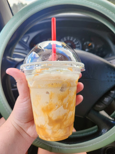 Got a blended toffee coffee and a matcha and both are good!! Very sweet (which we like) but just beware if you're someone who doesn't like super sweet. The woman who helped us was nice and answered all my questions which drinks and flavors and such! We did have to wait a bit in a line that took a little long (around 9am on a weekday), but we weren't in a hurry. Just keep in mind if you go at busy times!