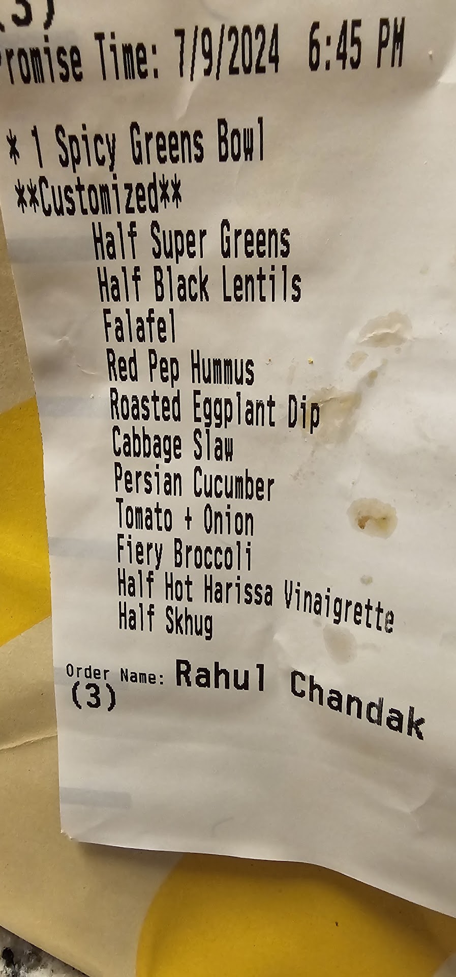 Ā Ā Ā Read moreThis location needs to get its act together. I know they've only been open a few months, but I've had problems with my order the two times I've gone (excluding their 'soft opening' free lunch day, which was fine). The first time, they left out the avocado on a Harissa Chicken pita wrap... which calls for an entire half of an avocado--not a trivial amount here, should be hard to miss that. Didn't notice until I got home, didn't bother turning around to get it corrected.