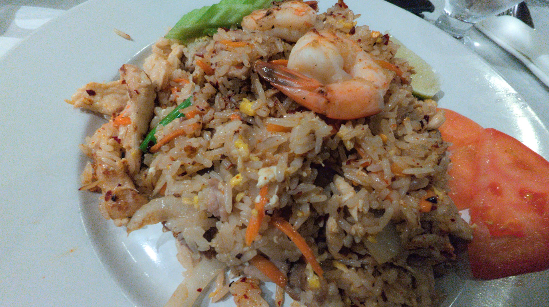 I don't feel like I got the extra mixed vegetables, but I can't say for sure because I've never gotten the dish with just chicken. Because of that and lack of spiciness I wish I could give 3.5 stars.