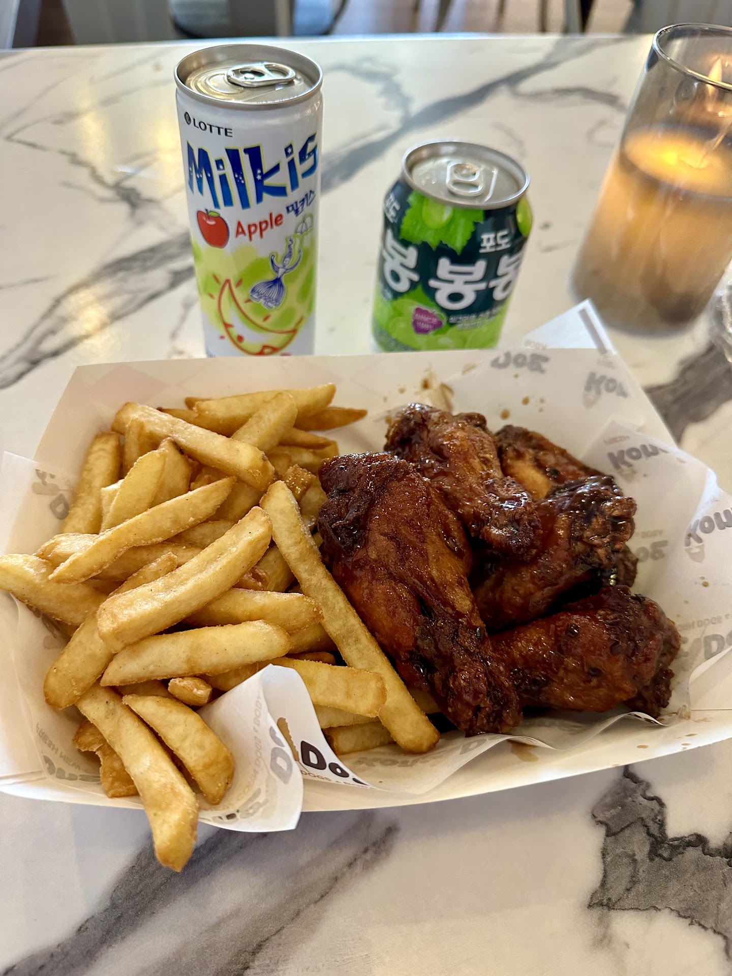The only problem I have with Kong Dog is the screens all over the wall playing TikToks and news reels of people talking about/eating corn dogs on a loop. I don't mind the K-Pop videos/music at all, but the ubiquitous videos of other people eating around me is not comforting at all. Everything else about the atmosphere is very nice though. I like the dim lighting, fake candles, and decals around the building. I wish that Kong Dog would remove the excess of screens so that I can enjoy a dine-in (not just to-go) meal here with my friends without these reels/clips antagonizing me. Management -- I hope that you will be able to take this into...