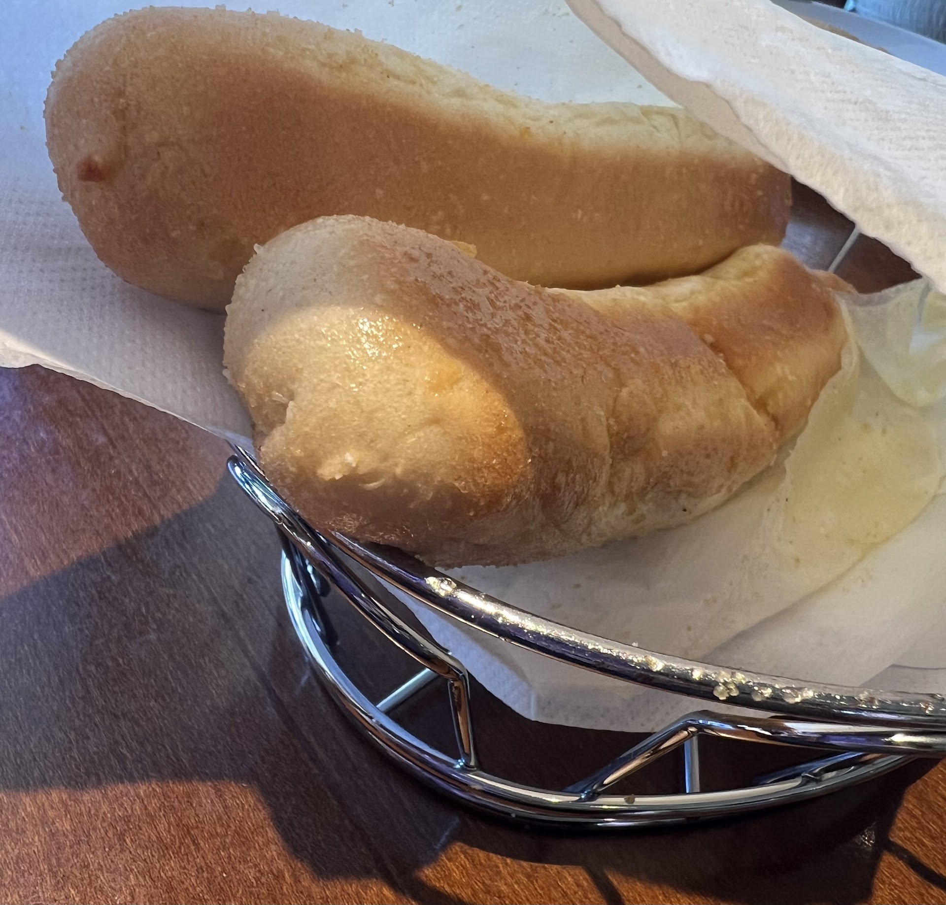No problem. She then leaves and returns with our soup and three breadsticks. The soup is cold to lukewarm. There are two of us. Three breadsticks. Sure, we can share one, but since they are endless, why not bring four?