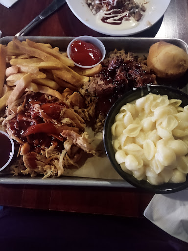 Read moreFirst of all the only reason i left 2 stars is because the waitress was great. Other than that i wouldn't recommend this establishment. I ordered the brisket. Which was a huge disappointment. The only flavor was the salt they put on it before it came out. No smoke ring and no smoke flavor at all!!! And was 90% fat and 10% meat... I also got the smoked wings. These as well were bland with very little smoke flavor. The blackened ranch dressing was the only saving grace for the wings. The beans are what i can only imagine as bush's bake beans from a can. Very bland as well. The mac and cheese was terrible as well. No flavor and the cheese was gritty feeling very odd. My wife had the bourbon glazed chicken. And it was very greasy and she didn't care for that meal. Greasy and very bland again. On top of our meal we ordered 3 mixed drinks. Which tallied over 20.00 for the 3. And our grand total of 86.00 plus a tip for small portions and terrible food which i can't even classify as bbq. If the owners feel this is good barbecue. You may want to take a tour of the southern states. And bring some flavorful seasonings back. I've worked and ate all over the southern states and this place give...