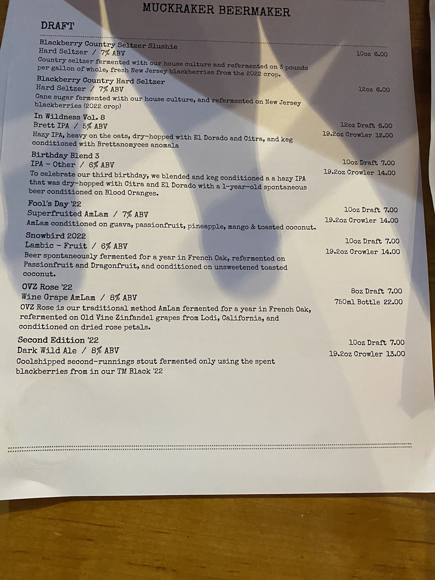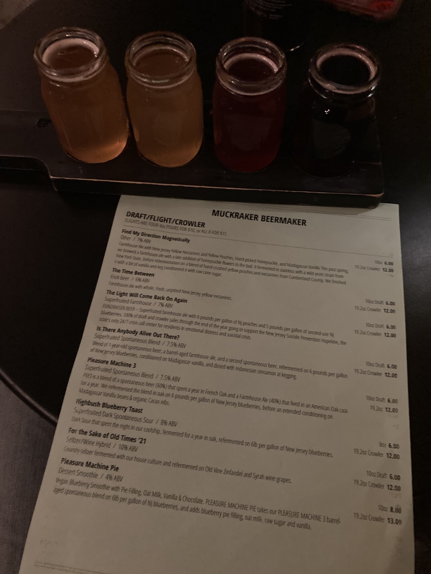 Overall, I was extremely impressed. Customer service is amazing. The beers are unlike anything that is being made. I am looking forward to more awesome beers! I heard they are going to get a Crowler machine. There are only a select craft beer bars in Northern New Jersey that are getting Muckraker Beers, but to get a wider range of their flavors, it is best to enjoy the beer straight from the...