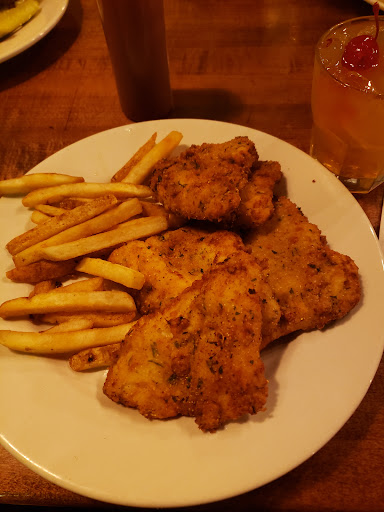 I have dined here twice. First time was a really good burger. Second time recently, not that great. Batter fried Cod was quite dry, obviously overcooked, but came out barely warm. It had a very strange thin, dark brown coating on it that maybe was from using Guinness in the batter. However, it didn't taste like a beer batter at all. My fries were not even warm, not crispy at all, and withered like they were old from a warming pan, and obviously had been sitting a while, and it looked like they had come out of the bottom of the bin....lots of little pieces. The tartar sauce was quite bland and needed more acid. I enjoyed the cottage cheese with salt and pepper more than anything. I didn't complain at the time because nobody wants to complain about their food and wait another half an hour while the rest of their table is eating, and I don't care about the money enough to want a refund. I would never come back here for fish again because I know I can get a 4 piece cod dinner from Culver's that is great quality every time for half the price. Service was good. Very nice and clean atmosphere. WORK ON YOUR FOOD...