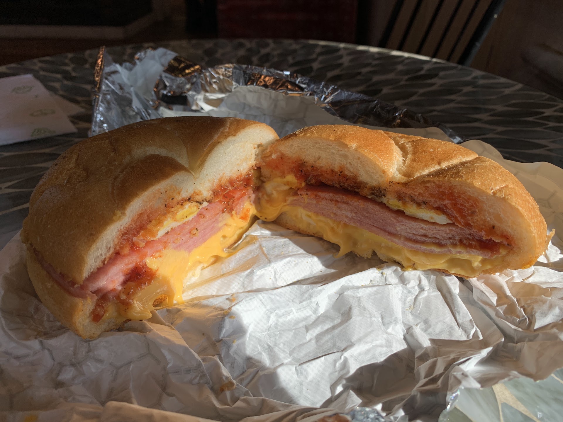 From the first bite, you're greeted with fluffy, perfectly scrambled eggs that melt in your mouth. The bacon is crispy yet tender, adding a delightful crunch with each savory bite. The sandwich is expertly assembled with just the right amount of butter and salt between two slices of roll perfection.