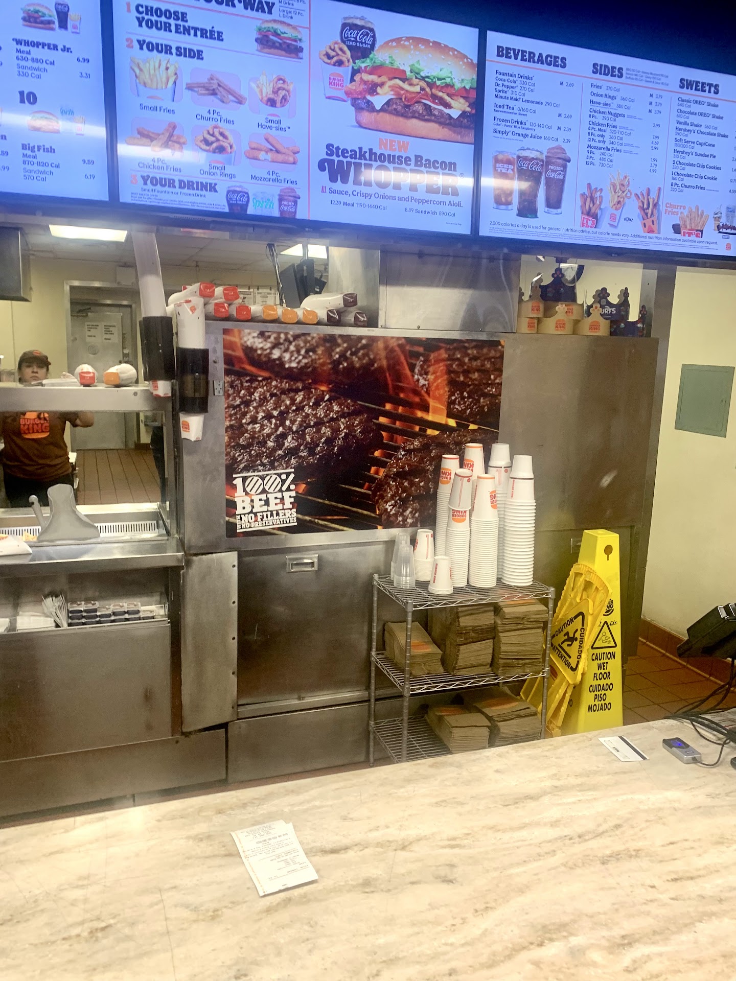 Read moreStopped here on my way from lowell, mass back to CT. traffic was building up on highway and this was quick easy off and easy on. We went inside to sit. We were greeted very nicely. Our order was immediately taken and by the time we filled our drink cups and picked a nice window booth, our food was ready. The fries were fresh and soda machine well maintained. My nephew had a whopper with bacon meal, i had an impossible burger meal. Both burgers were tasty. I have to say I felt my bun looked sorta like it had been frozen and defrosted, but besides that it was fine. The place was clean and I even used the bathroom with no regrets! Definitely a...