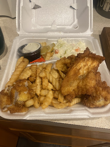 Loses a star because they're incredibly stingy with else you get in the bag. You get a half pound of French Fries and two generous fillets with a haddock dinner, but only two little packets of ketchup and a third of a lemon. Seriously? The one time I bought the 8-piece Haddock meal, the fish were cut into rather thin strips, and were a bit drier than in the individual sized meals. I'd recommend spending a bit extra on multiple two-piece meals if you're buying for more than two people.