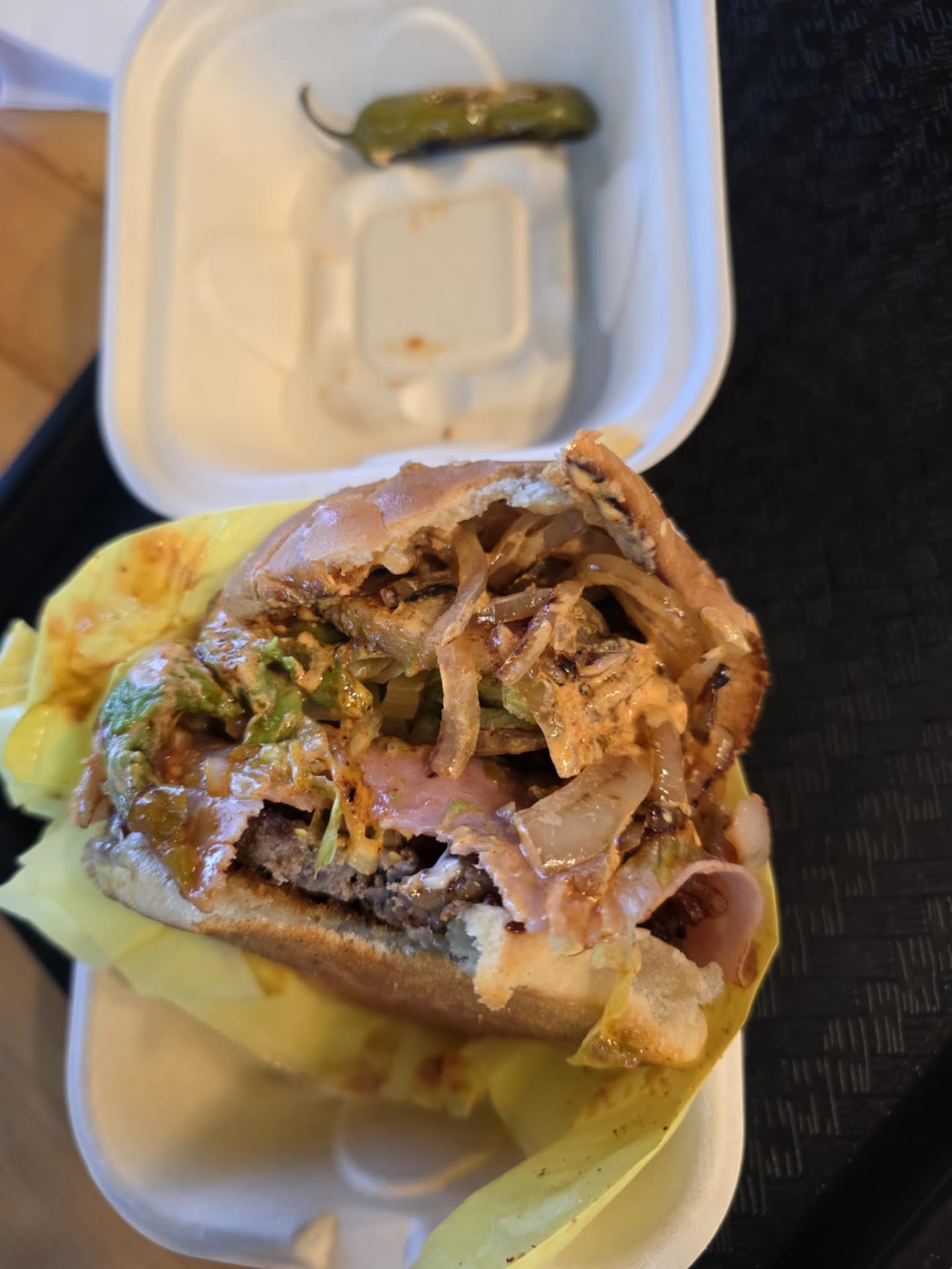 Today I was in Vernon for work and I was craving burgers so I went on yelp and I found this place. What can I say? These were Mexican style burgers and they were absolutely amazing. I got a couple of their popular items and I also got their loaded fries and the stuffed jalapeños. The burgers came with ham, the meat that cheese, the salsa remind me of a torta. This place is absolutely delicious and the service was so fast. You have to check this place out when you’re...