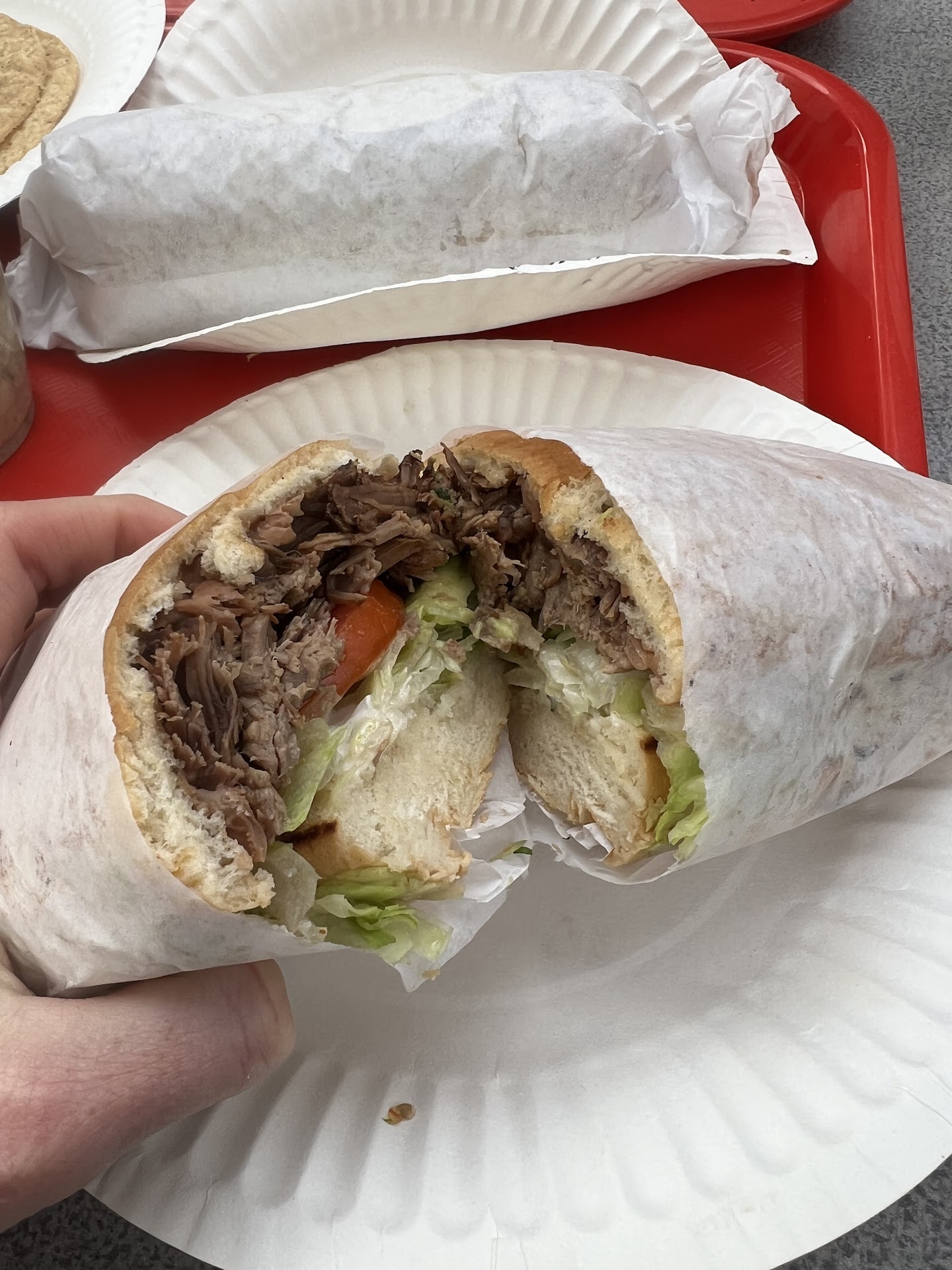 I didn’t realize the Torta Barbacoa ($8.15) was a sandwich! It included marinated shredded beef, mashed beans, lettuce, tomato, avocado, & mayo. It was good if you are in the mood for a sandwich. I really enjoyed the meat, but next time I would get a burrito because the bread got soggy too quickly and the burrito my coworkers got looked delish.