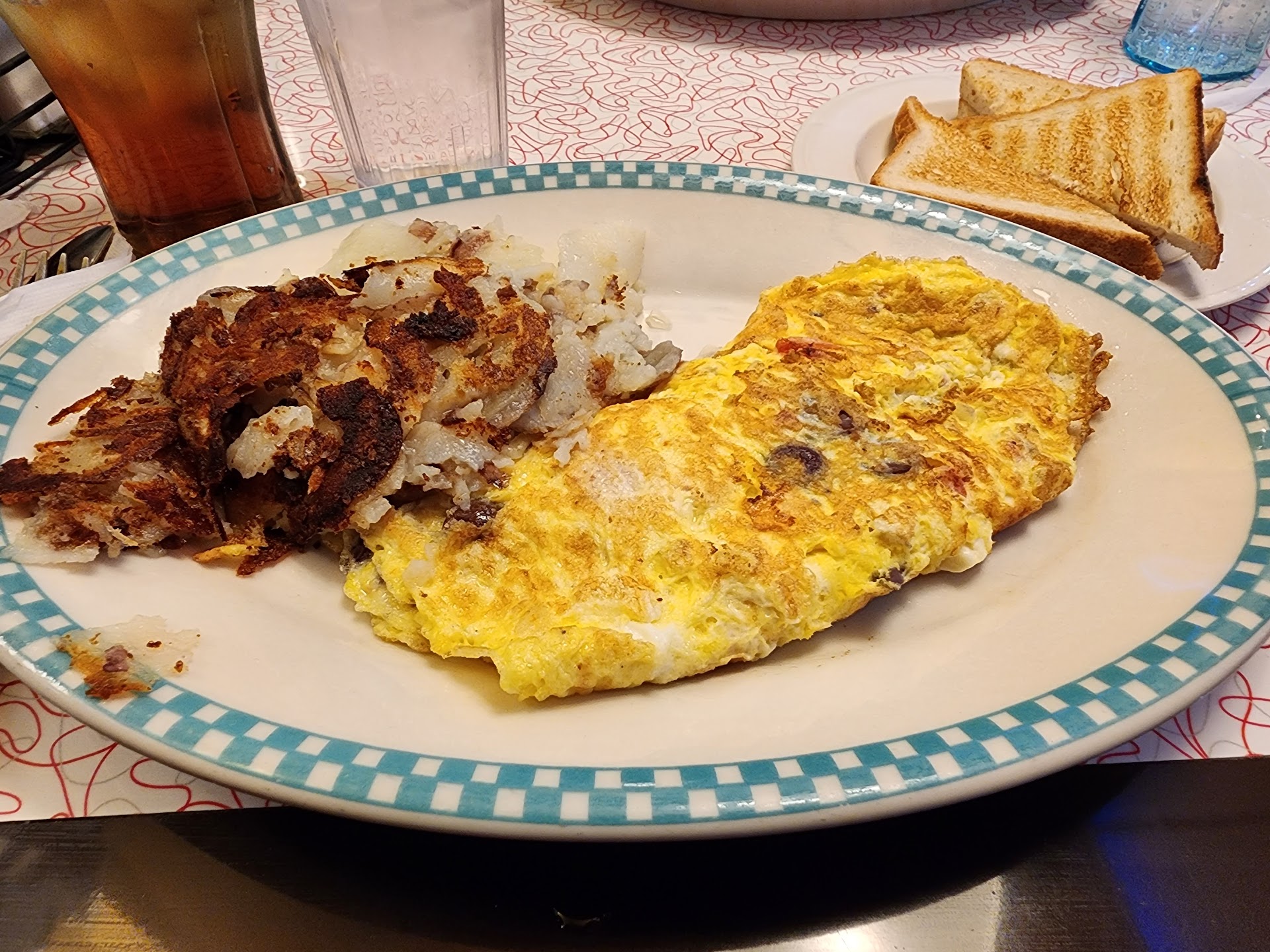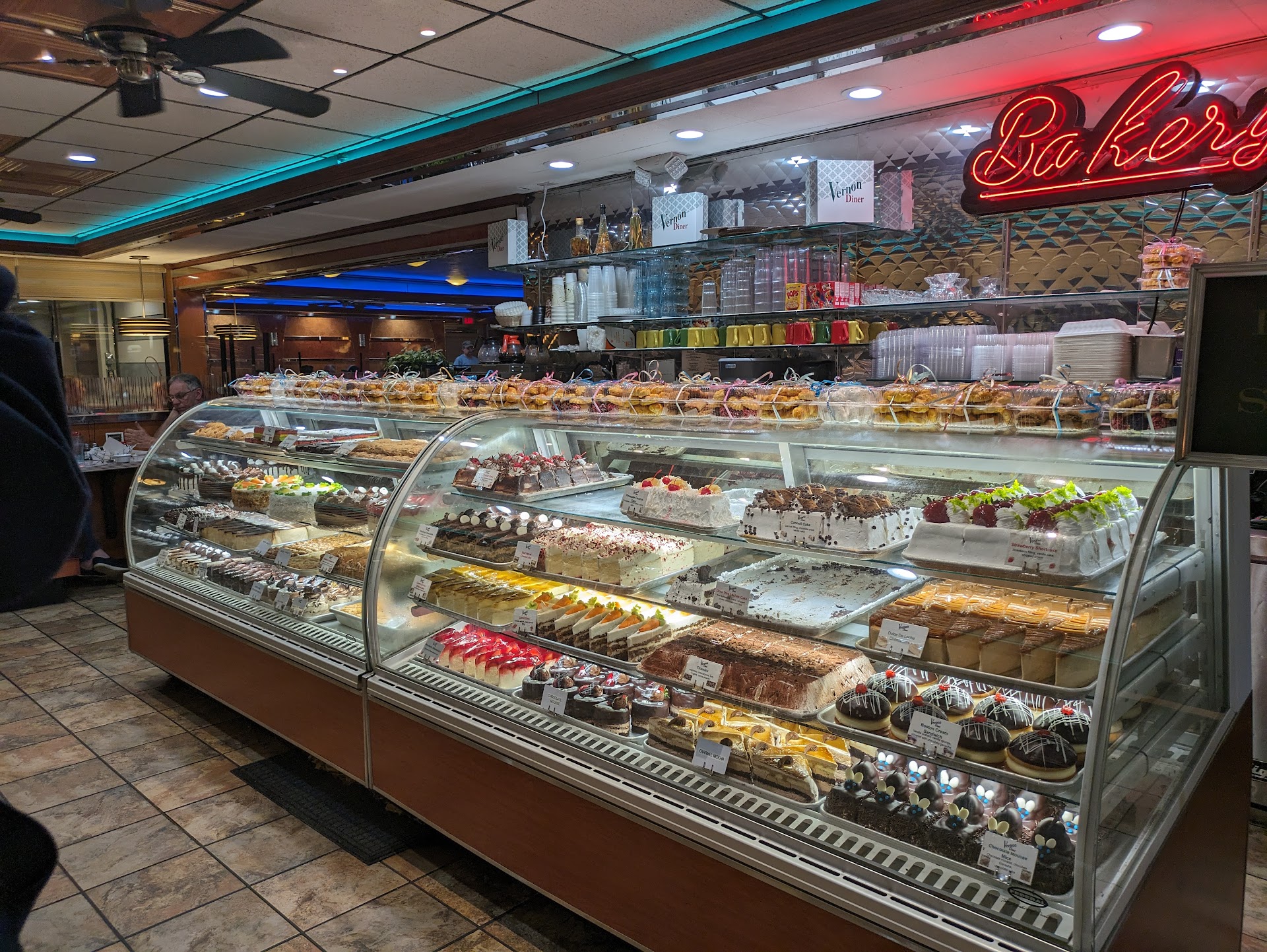 Read moreThis is a place I would give a second chance to. It's super cute, has the diner vibe and our service was good. Not excellent but still very friendly. We visited later in the evening but nowhere near closing time for them. We had a little bit of everything between us at our table. My sandwich and fries (Reuben with corned beef) was dry and tasted old or like it was cooked on a dirty flat top. It wasn't the worst sandwich I've had but was extremely lacking and my fries were either held under a heat lamp or forgotten about by my server. However, another of us who had the French toast (cannoli), was extremely satisfied. They were excellent. Sweet potato fries had by another table member were also very good but the other person at the table who had a sandwich and fries had the same experience as me. Dry, old fries and very disappointing sandwich. We got several desserts to go and those were very middle of the road. They did not justify the price tag and I wouldn't get anything from the dessert case again in all honesty. I will be back early to try strictly the breakfast menu, which is where I feel that they really do well. My last comment would be that my coffee was unfortunately very old. All in all, interesting stop, some food is very mediocre to bad, some is excellent and the service...
