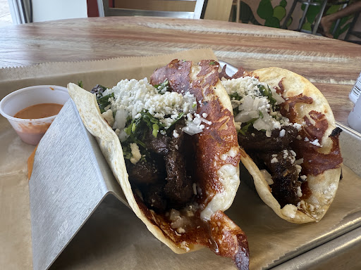 I ate here twice before and didn't leave a review because I wanted to see if it was better than a 2 hit wonder, both times prior I got the brisket burrito and it was very good! Today. I got the brisket taco and the skirt taco trying to determine which is better and I am at a stalemate now, they are both incredible! So now I'll be forced to get 2 brisket tacos and 2 skirt tacos, but Dang it, they are super good! And the owner is really cool. Chill guy, loves his food and you can tell through the taste! This guy cares about the product he provides! I'd give it...