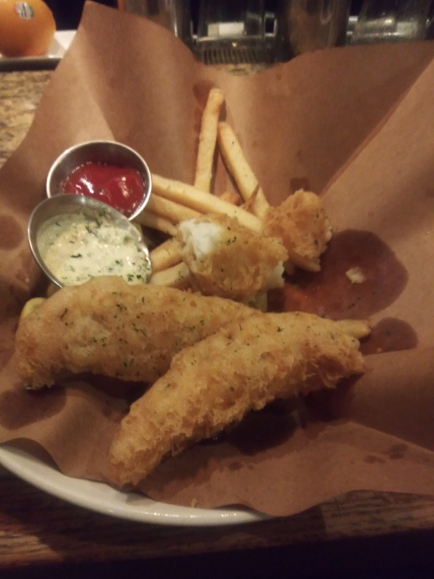 Read moreA welcoming atmosphere, ingenious idea of the paper on the tables for a clean and sanitary surface to eat upon; we live here in Vero and have tried a couple of times to eat at the Bone Fish Grill, but long wait times have deterred us in the past. Last night we called for a reservation and our table was waiting for us when we arrived. Hosts were very cordial and welcoming at the door, seating us promptly. Pricing of the restaurant is not very family friendly, party of 6 and the bill came to $150.00 with two people getting a hamburger and one fish and chips. We informed the waitress that we have never eaten at the Bone Fish Grill so you would think at a minimum of 15% gratuity, the waitress would go out of her way to make us feel welcome, first impressions are everything for a growing local business. Upon serving our meals, the waitress knocked over a drink on the table, yes accidents happen, hey I get that, apology accepted, but the drink should have been immediately replaced, but it wasn’t. To beat all, we were billed for the drink spilled and we had to kindly inform her of her error. The appetizer of Sesame Tuna was out of this world awesome, but from then on not so good. For a $12.00 overly greasy hamburger with added mushrooms for an additional 90 cents with mediocre shredded lettuce, tiny slice of tomato and onion on the side and a handful of homemade potato chips is unjustified for the cost. Shredded lettuce is not high end dining, really! Another of the meals had giant pieces of peanuts that ruined the texture and consistency of the meal, needless to say one of the parties of 6 went home hungry because she didn’t like the giant peanuts in the meal; waitress never came back to the table to ask us if the food was good or if she could get us anything else. We had to catch her on the run to bring us anything extra, literally on the run, overworked? Too many tables to serve? Management should be out on the floor managing, Gordon Ramsey here you go. Needless to say, we will not be returning to give it...
