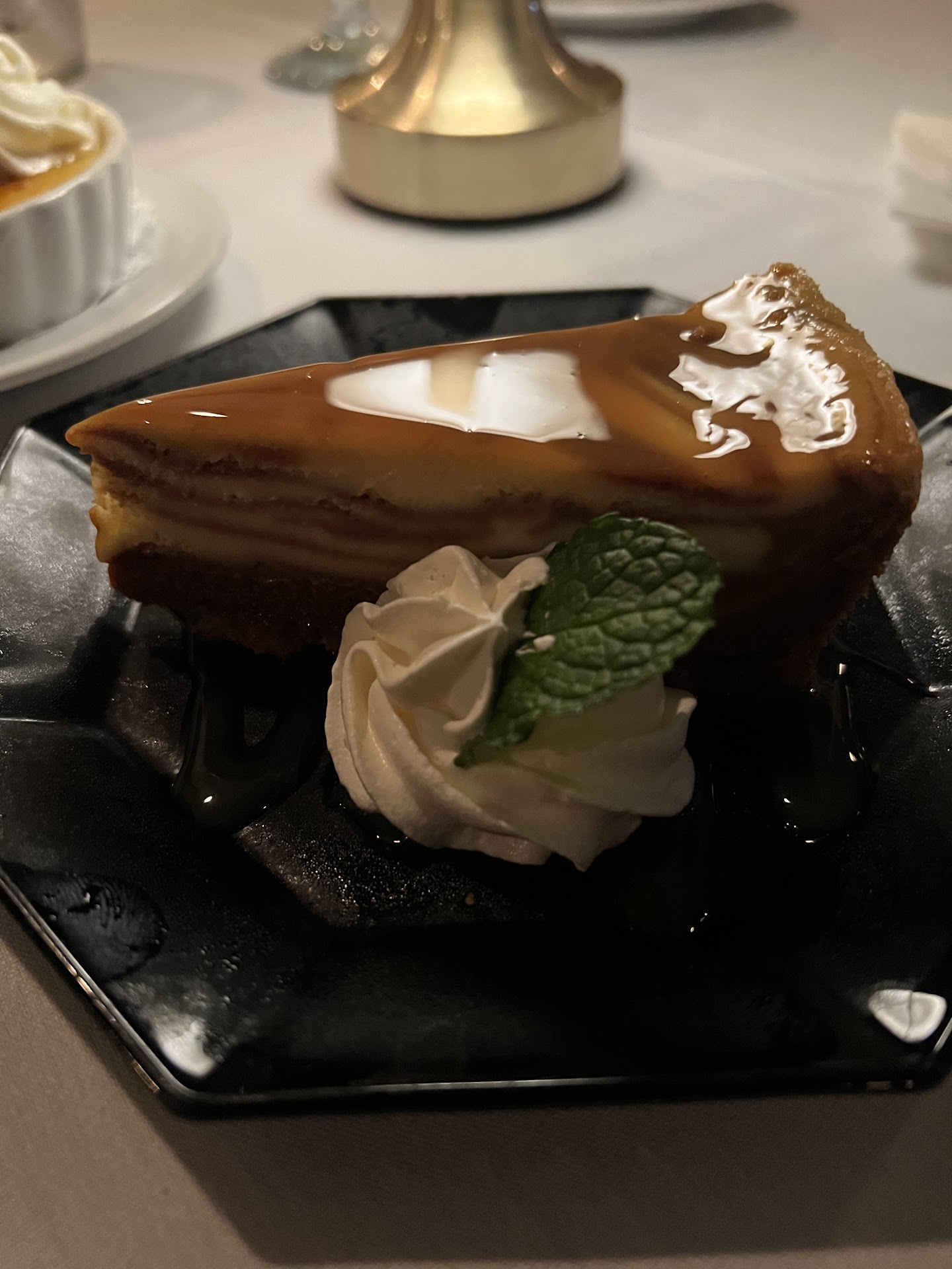 Our go to places for celebrations like The Tides and Ocean Gril Restaurant, while both very good, paled in comparison. For dessert I had the Creme Brule. It had the thinnest crust which made a satisfying crunch before getting to the creamy delicious part. My husband had the Cheese Cake with chocolate and a shiny sheen on top. It was magnificent.