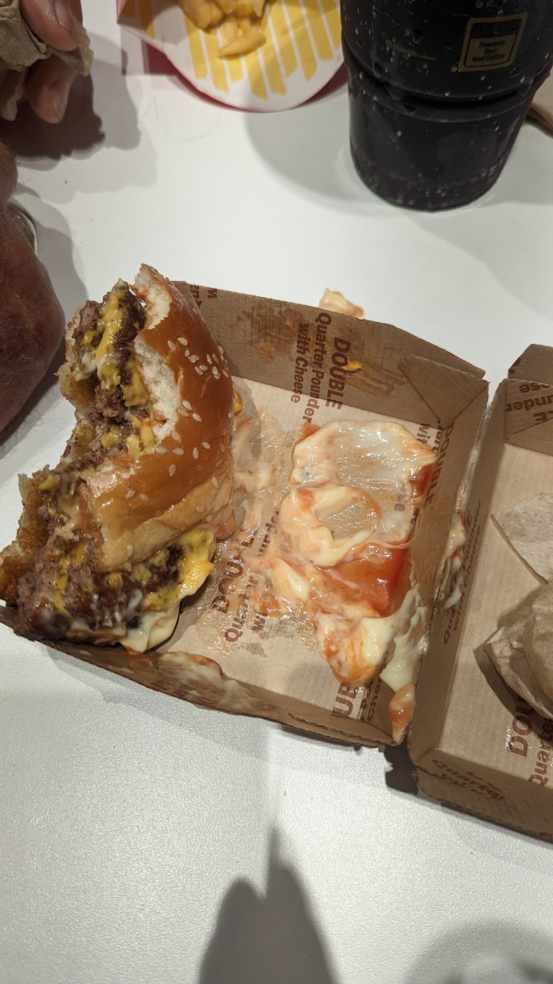 Kids wanted large fries and Oreo McFlurry's. I debated the double fish filet combo meal as It was Friday and I observe Lent. A cashier took our order. Quick, easy, and to the point - female cashier was polite and indicated that the order would be brought to our table upon preparation.