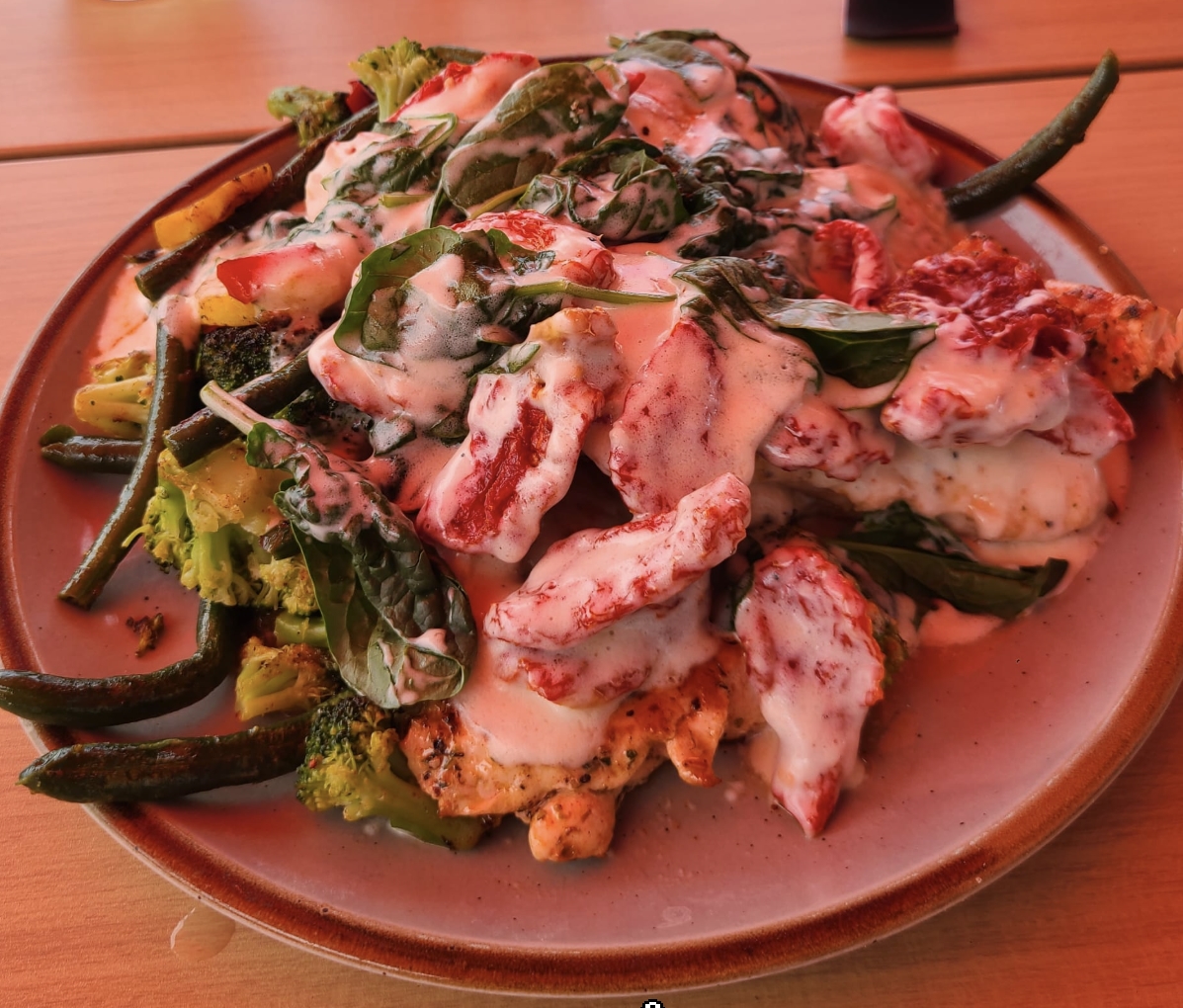 I had the grilled chicken bacon & ranch wrap. It was just right - filling and refreshing. It came with a side of fries or coleslaw. I hade the fries which were a little greasy, but crispy and delicious. I think many beacgoers would find they hit the spot. The wrap and fries was reasonably priced at about $13 - a good value for the flavor and view.