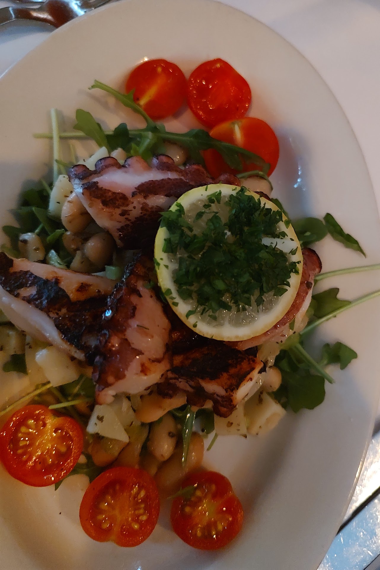 Lovely restaurant located on ocean drive. Clean, Nice ambiance, servers in semi formal wear, white tablecloths. Two negatives right away. The 2 hostesses at the front were not welcoming at all…. And for such an upscale restaurant, one of them was dressed super casually in jeans. It was off putting to start our experience greeted this way. Both gave us a look that we were disturbing them . This is not a welcoming greeting to customers who come to spend a good deal of money. The other immediate bad thing was a horrible smell in the building. After being seated, the bus boy was filling our water glasses. When asked about the smell, we were told they were doing roof repairs and we immediately recognized that smell of burning TAR. We asked our server about it and he also offered no apology. We should have left the restaurant then. The smell was all permeating. Cocktails were good but we had to ask specifically if there was a full bar. It was then our server asked if we would like a menu for cocktails. My ITALIAN MARGARITA was served in a scotch glass! Mediocre wine list arrives with the food menu. Bread arrives with a small ramekin of an infused oil. Although we left the basket open when we had finished the bread with our drinks and appetizer, no refill on the bread was offered for the remainder of the courses. We both had the grilled octopus appetizer. Nice presentation, but small portions of the octopus. Caesar salad was not cold and crisp and mildly soggy from the dressing. The homemade gnochhi were not pillow soft and was served with too much of the red sauce. My husband had the cioppino. The mussels were “off” ( bad? Not fresh?) which also affected the cioppino broth. We told our server, but all he said was that he would tell the kitchen. My husband was offered no alternative even though he left the remainder of the meal untouched. Lastly, we had booked reservations online where you are asked if this is for an occasion and to leave remark on what the occasion is. Ours was clearly articulated that it was a birthday and our anniversary (yes, same day). Not one staff made any acknowledgment to our celebration. Dario did not stop by our table to offer greetings although he was stopping by many tables to chat ….. No dessert offered, neither a liquor. People that come here are spending a good amount of money…..to have a good total experience. Neither the owner, the staff, or the food project anything to give you a feeling that you have been well appreciated. I chose to point this out to Dario. He actually went to check our reservation online to check if we had indeed made these notations. I will take my money elsewhere and I will not recommend this...