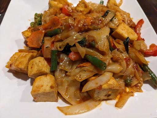 For my main course, I opted for the tofu drunken noodles, which were simply divine. The noodles were perfectly cooked and had just the right amount of spice. The tofu was well-seasoned and added a nice texture to the dish. It was definitely one of the best noodle dishes I've had in a long time.