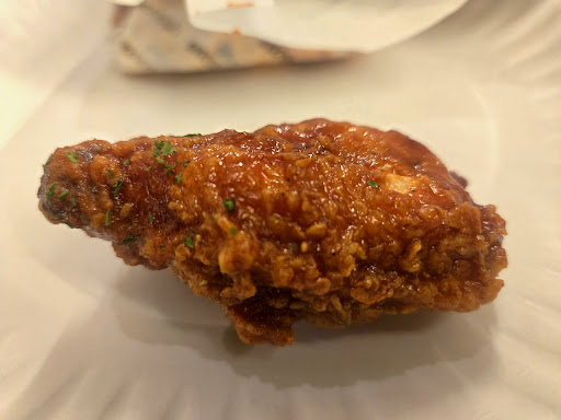 We also ordered the corn ribs, soy sauce & garlic wings, and fries. The fries are awesome. The texture and flavor are on point. The wings are more traditionally sized vs bonchon, but I prefer the higher batter/sauce to meat flavor ratio. The flavor was also way better. The corn was good and a cool form factor.