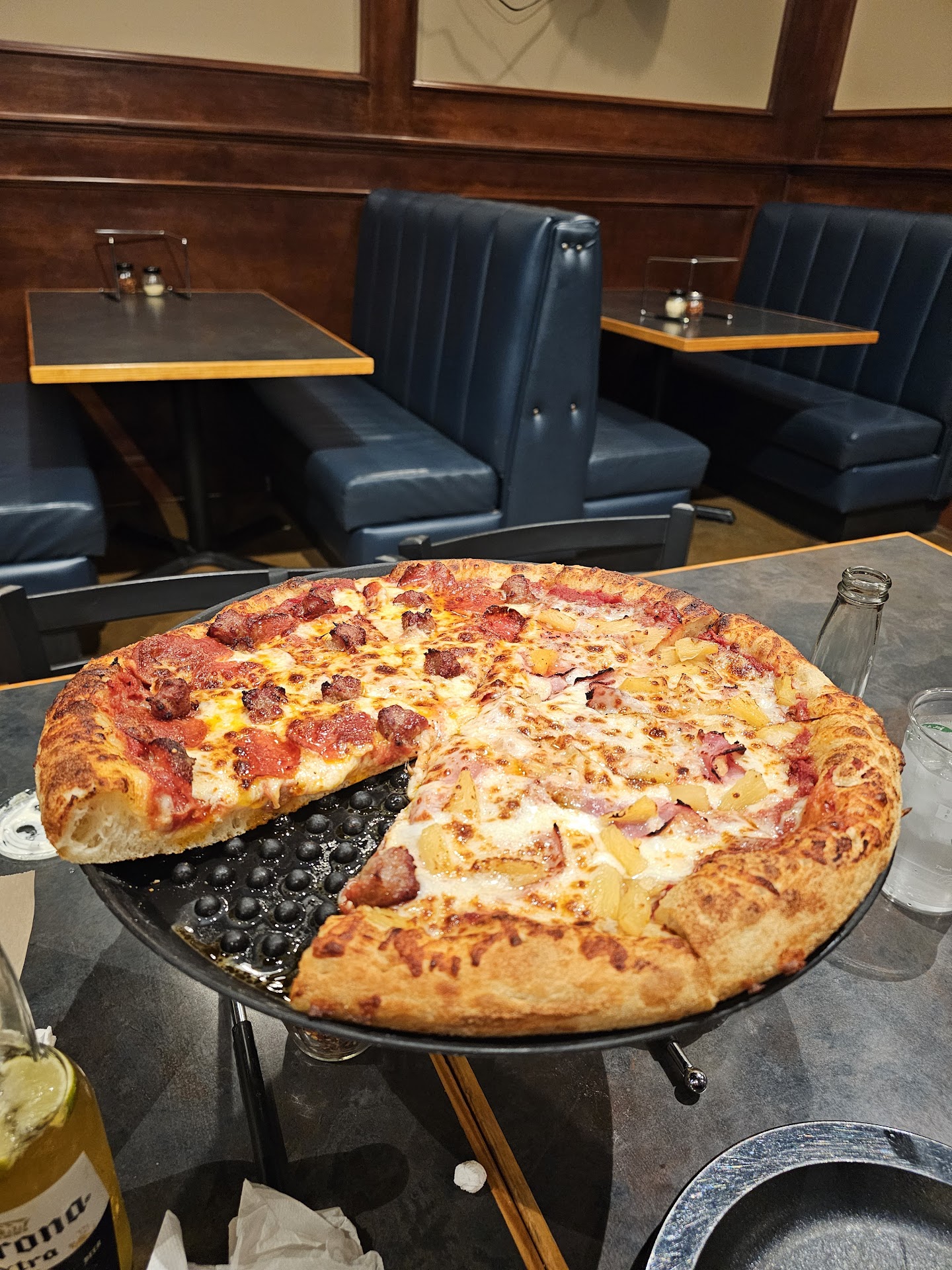 Read moreHello all. I have been reading others reviews and appears there is more concern about cleanliness and friendliest more than the reason we chose a pizza place... "Pizza!!" Well, perhaps it's the area (Residents). Moving on, it appears that Barros has now fallen victim to a Double Broiler pizza oven instead of a traditional baking oven out of convenience and less labor. 😢 My pizza was disappointing. Very over broiled on top and oily on the bottom. They must have greased the pan while going through the conveyor. No need for a pan or screen with traditional pizza baking. As for their wings..Top notch like always! I still will support my local establishment (For the wings only). As for the pricing..way over done! $44 for a 14 in pizza with 24 wings an 1 soft drink? Yes, everything has increased in pricing. Unfortunately my salary has not. But this is everywhere. So, in conclusion the next time I want to spend $44 for a party of 2, I will most likely head to Texas Roadhouse or Longhorn Steakhouse for about the same pricing. As for pizza, many options if willing to drive. There is always traditional Chicago style for about the same pricing with atmosphere instead of Chicago Sports...