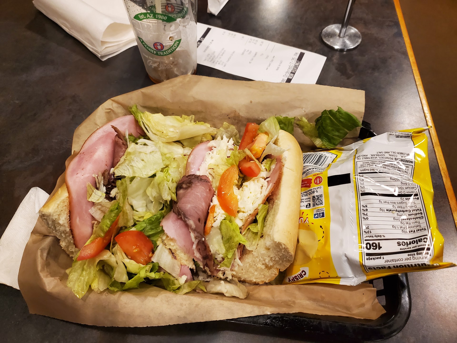 Read moreI want to like it, I really do. My wife loves the pizza. I'm not a big pizza fan so I tend to go with the other menu items. The pizzas usually come out pretty good. It's the other items that get a little weird. Maybe that's my fault for ordering non-pizza things at a pizza place. Tonight, we ordered a personal pizza and a cold club sandwich. The sandwich came out in about 5 minutes. It didn't look super great. It looked like it was thrown together very hastily. There was very little meat on it and very little cheese. LOTS of shredded lettuce! I poked around a little and there wasn't a speck of any kind of condiment on it. It was totally dry. Bread, a few slices of deli meat, lettuce, tomatoes and some cheese. I went to the counter to ask for some mayo and mustard but I couldn't get anybody to acknowledge me I think I was lost in a crowd of waiting Door Dash people. After a while, I went back to the table to sit down. My wife's food hadn't been brought out yet so I thought I would just ask the server for the condiments. My sandwich came out in about 5 minutes but my wife's pizza took about 15 minutes I can understand that cold sandwiches are quicker to make than pizzas but it would have been nice to get the food at the same time. Come to think of it, the same thing happened last time we were here. My food was brought out quickly and my wife's pizza took a while. If it wasn't for my wife loving the pizza, I don't know how often I would...