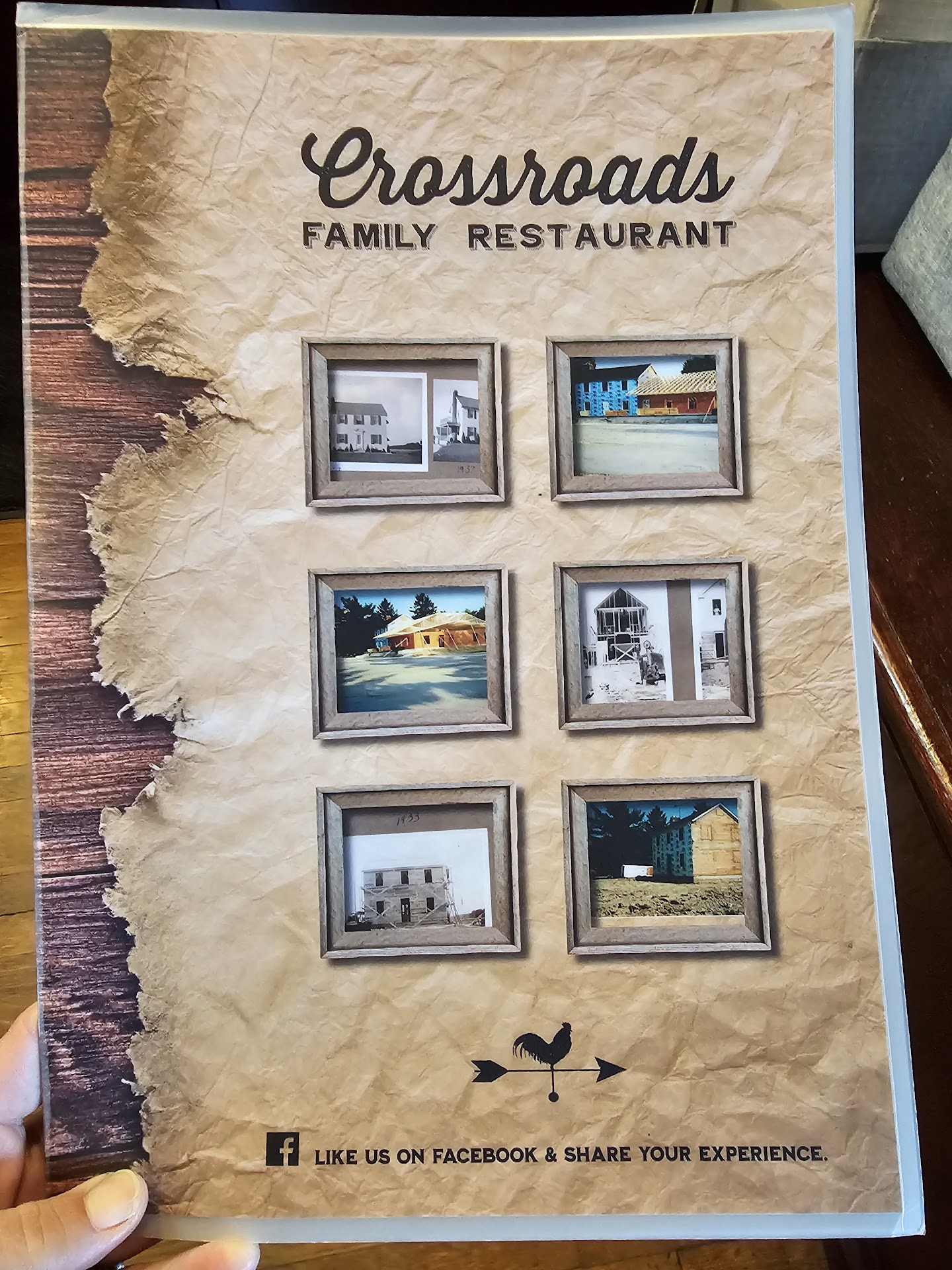 Just ok for us... no not even ok really. My wife and I decided to eat out on our last night of camping at the local state park. Great campground BTW. Out of the limited choices we chose crossroads thinking it had a more country and local feel to it. The online reviews seemed pretty good what with a 4.5 star rating and all. Things started off slow... They weren't very busy, yet it took our server at least 5 minutes to come take our drink order... 2 waters. It was another 5 minutes before she returned with the waters and during this time at least 2 other servers asked us if anyone had taken our drink order... that was flag # 1. Brushed it off and continued on. We ordered the fried green tomatoes we had seen on the online menu... they didn't have any. 2nd red flag. ok let's just get the fried mushrooms. Quick service on those... good thing the ranch dressing had flavor because the mushrooms sure didn't. Placed our order for dinner... 10oz filet medium well, baked potato and side salad with thousand island for the wife. Ribeye medium with a baked potato and a side of mixed veggies for myself... here's where the flag counting stops... side salad comes out with some type of vinaigrette dressing, may have been they're homemade thousand island, she wasn't sure. She sends it back and requests a side salad with blue cheese. Dinners arrive shortly afterwards. both steaks are cooked to order but hers tastes like it has been marinated in a vinegar type seasoning... maybe to help tenderize it??? not really sure. She ate about half of it. my steak looked odd even though it was a medium steak there were no sear or grill marks on it and it looked as if it had been boiled... very bland looking and the taste as cooked was not good. I was able to dress it up with some salt and hinny 57 sauce... I never ever have to dress up a properly cooked steak. The mixed veggie was just as bland as the steak, and I used an unhealthy amount of salt just to take a few bites. Both baked potatoes were severely undercooked and cool to the touch.