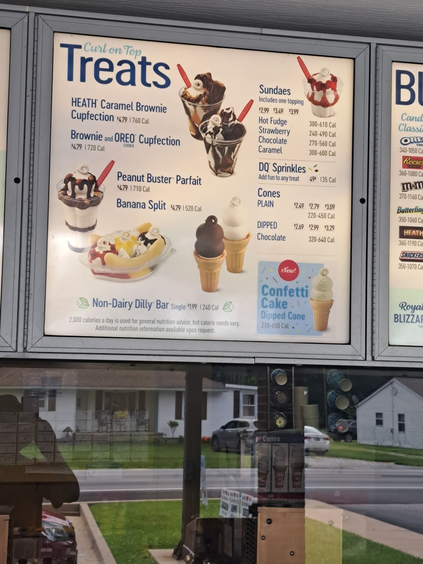 Read moreI always ask them for a Sundae lid for my blizzard. I live on the third floor of my building. I always offer to pay extra but that doesn't matter THEY DO NOT WANT TO GIVE ME THAT LID ... They eventually do but they give me dirty looks.. LOL .. every summer for five years now. I have good reasons, but, should I have to sit in a Drive-Thru and explain them or should they just give me the dang lid? I think they should always give me the lid...