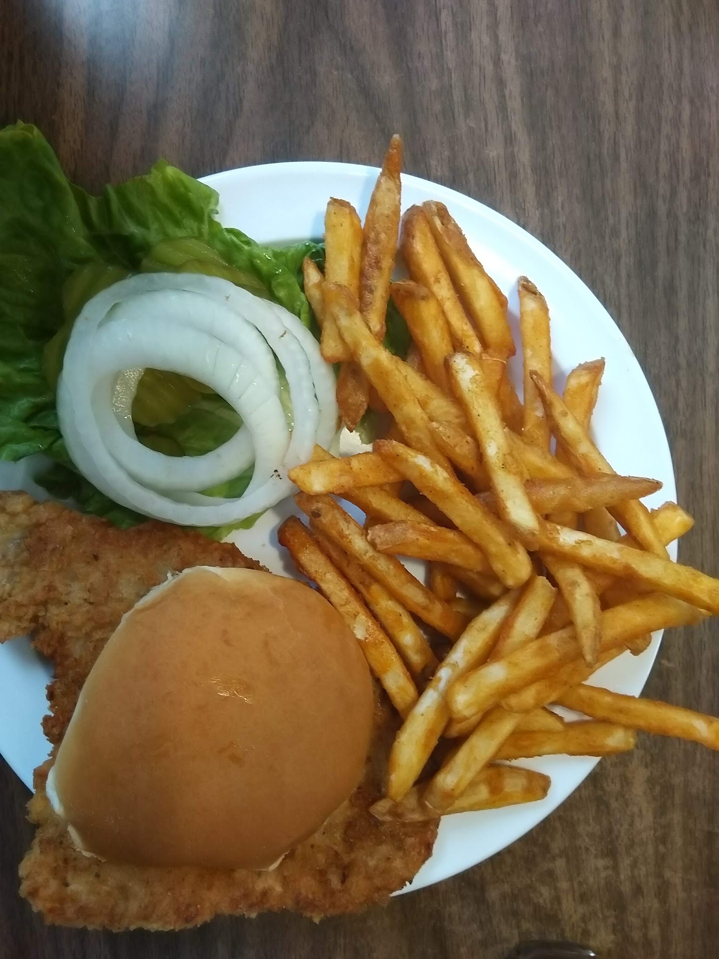 This is straight up restaurant supply food, nothing surprising, or fancy, just filling, regular old comfort food. When we walked in, one of the four servers yelled at us to sit anywhere. So we did and we waited for a menu and water....and we waited, and waited and waited. Until finally I stopped one of the young girls and asked her for a menu.