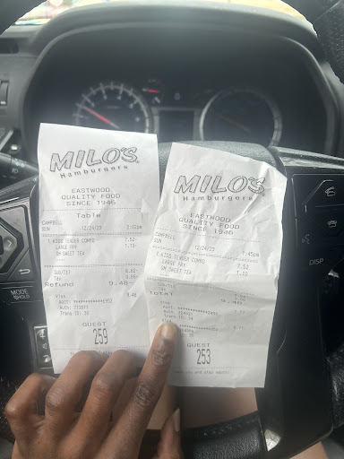 i came here about a week ago with my family for the first time and ms. alicia (not sure of the spelling because i got her name from another employee before i left but i think sheās one of the managers) was 10/10 amazing! it was 5 of us and we all walked in looking at the menu trying to decide and she asked us if weād ever eaten here before. we all replied ānoā and she immediately turned around, starting pulling things out of a drawer, even disappeared around the corner. when she came back she had a tray with some chicken tenders, fries, and a few different sauce options. she let us all taste their different sauces with the chicken and fries before we even ordered to give us a better idea of what we wanted. i said what fast food establishment you know that do that?! on top of that, the samples were amazing so my family and i were even more excited to eat there. we ordered, sat down and ate once they brought all our food out and everything was so good. too bad we were just visiting but the next time iām in birmingham, TRUST i will be back to eat at miloās (hopefully this same location š) thank you again and a special shoutout to ms. alicia for making this a great fast food experience for...
