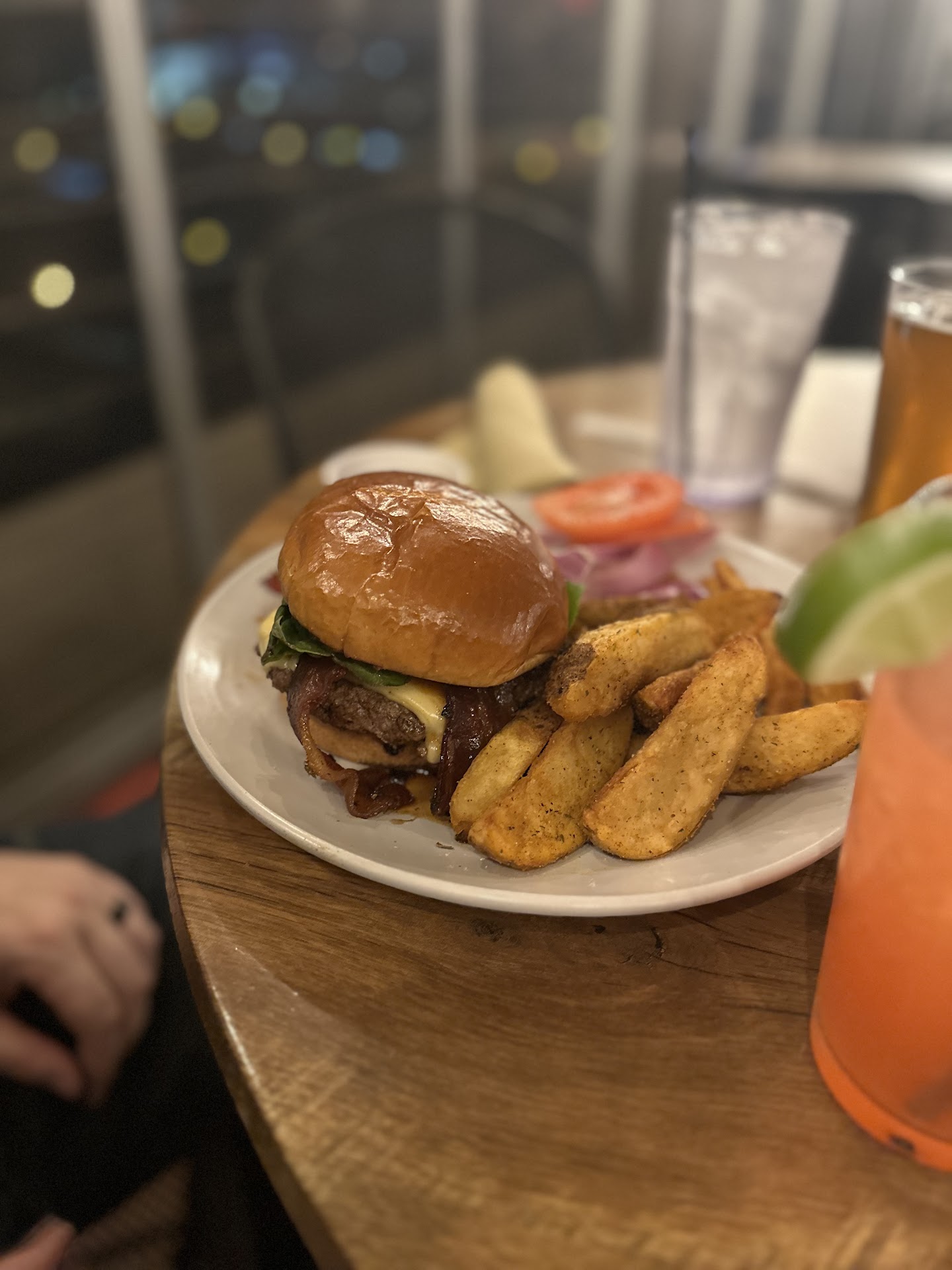 Read moreWe loved the special pretzels they bring to the table, and really enjoyed the "red fish" (very nicely done). The parmesan grits & (very sweet) Mississippi Sunset drink are good too. The iced tea is served sweet, so you have to ask for it unsweetened. They didn't provide any mustard or ketchup for the hamburger. Our server was nice, but low key (& totally forgot our green tomatoes order, with no apology). It was a hot day (95 high), but the temperature was nice at the top of this hotel, with misters & good shade. I'm afraid the busboys acted like zombies, and practically no staff cracked a smile (not even the hostesses, which was wacky, since they're supposed to be the guest-welcome team). We're from Austin, so we were surprised at the deadness of the staff. We were also surprised that every drink & fillup came with a new cup & straw! The world definitely doesn't need straws, and that message needs to make it to Mississippi. I'm afraid each straw had paper at the end of it (to cover the tip), which I've not seen anywhere (in the world). Since we're on a high roof, all the paper goes flying off with the breeze. Please, please, please, stop providing straws with your drinks (unless some woman with a lot of lipstick requests it? ;-) ) & try to fill up existing cups with water (rather than leaving tables with 10 glasses of ice at the end of a meal). And please keep making those AMAZING pretzels &...