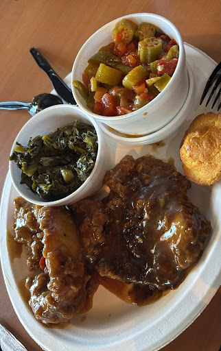 Read moreI say this without hyperbole or exaggeration; this meal is the best thing I’ve eaten in Vicksburg. The smothered porkchop with rice & gravy, collard greens, stewed okra & tomatoes, with a surprise helping of peach cobbler was all amazing! Plus very affordable