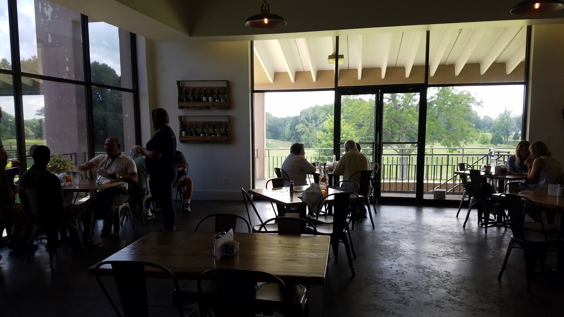 We had the Philly cheesesteak, spicy shrimp sandwich and a pizza. We drank tea and had pork rinds. Everything we had was sweet except for the fries for some odd reason. The sweet tea here is some of the best I have had. The fries are great. My Philly sandwich had tenDer meat and good cheese. It also came with what I would describe as a sweek bar b q sauce. I love Philly cheesesteaks. Im not sure what this was, I have never had a sweet one before. I wouldn't eat this again. I also had half of the spicy shrimp poboy. Once again it was sweet, not spicy. Should be called the sweet shrimp poboy. The shrimp were cooked perfectly though. We added hot sauce to the poboy that made it better. I tried a slice of pizza. Not bad just wasn't great. The sauce tastes hollow. It was missing something. The waitstaff was great and the views of the golf course we're nice. This is the only restaurant in Mississippi we have ever dined at. ...