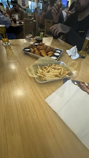 Bone in wings were tasty but not as hot as they should be. Beer was cold.
