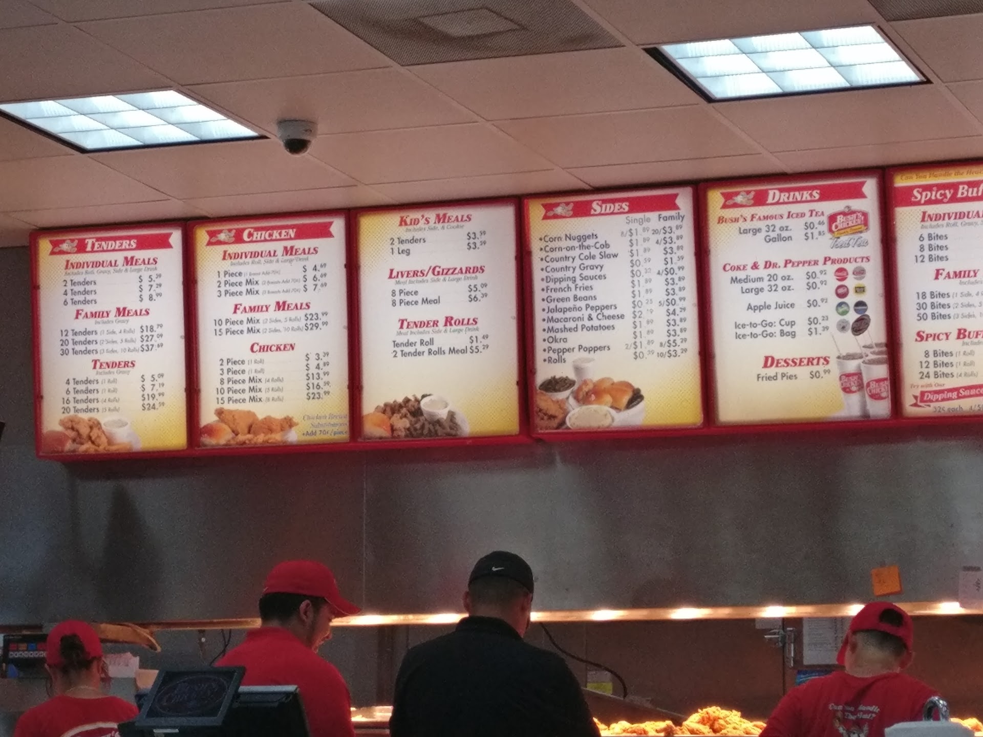 Read moreIf your hankering for some fried gizzards this is the place. It's my goto for gizzards. The gizzards are very nice sized. I prefer them soft but Bush's only cooks them one way. Still good though. I like them with freedom fries, white gravy, and a roll. Since after the pandemic I started eating my gizzards differently. I love to put some ranch in a small condiment cup then pour in some buffalo wing sauce. For those who love ranch & wing sauce..."together". DELICIOUS! But that's my taste buds. Even just straight wing sauce is great, too. Fanta strawberry w/ ice is my goto drink with fried gizzards or chicken. Ok, so I have never bn inside this location. I always go to drive-thru. Service is good for the way drive-thru is done here. And, yes the food...