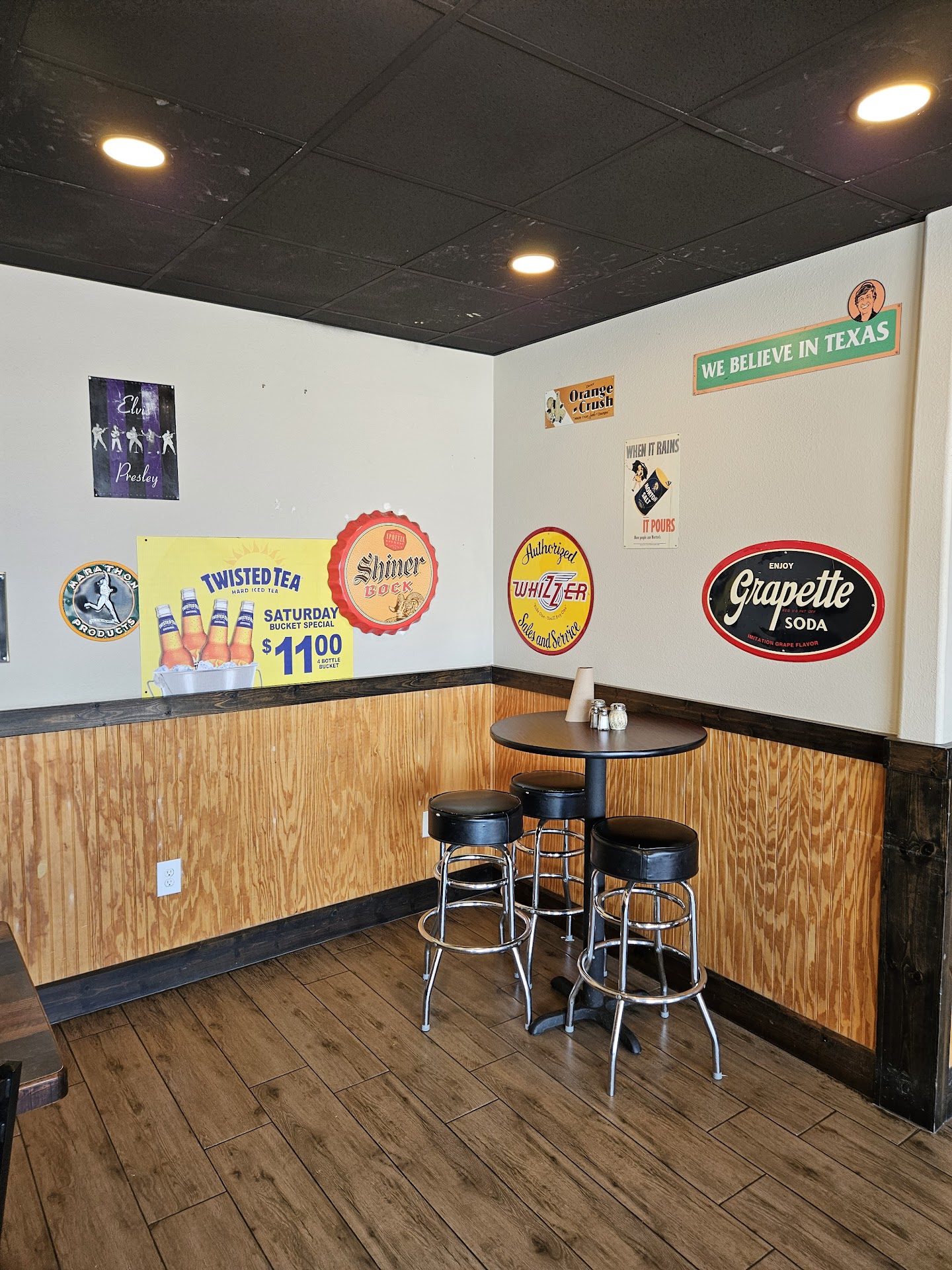 There is plenty of table seating inside with a small bar-height are near the kitchen if that's your thing.