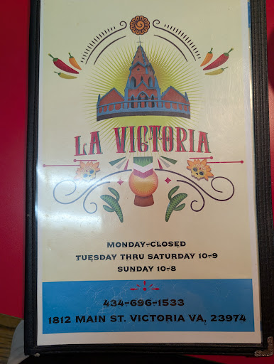 Read moreIt's a very rare day indeed when I need to rate a restaurant so low. We are on vacation and stopped to eat in the very small town of Victoria, VA. I'm used to very authentic Mexican food, and this wasn't even close!!! I took 3 bites of my enchiladas and had to shove them aside....(Who puts cheese dip on top of food.....the enchiladas had a sour taste. The rice and beans didn't taste homemade, but I felt they came out of a box and can. The place was close to empty, the waitress was friendly, but did not come back to check on us. The place did look clean,...
