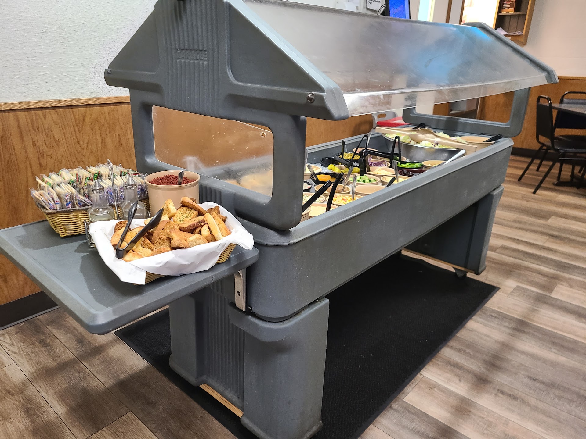 Read moreWhat a relaxing place! I felt like I walked into my grandmas house and was instantly brought back to my childhood. You could smell the homecooked food and the salad bar made my heart so happy! Our server, Denny was full of silly and kindness as he walked around the room teasing and making jokes with all guest. The place was quiet and calm except for the laughing ever so often which made us smile. The food arrived beautifully displayed, the fried catfish, shrimp and hushpuppies cooked just as my grandpa use to and not to forget the beautiful baked potato staring back at me. Rolls buttery hot and the tea just as it should be! If breakfast is what you like well the menu was large and looked to be a place I must revisit one morning when I’m back in town! One last thing, my heart smiled as we paid our bill at the front counter and there sat two high chairs, cleaned up with a bib, napkin and saltine crackers plastic wrapped on top of the tray to keep it all safe and clean! Another wonderful peak into the past where we were clean, comfortable and relaxed for homecooked food just like at grandmas! Sorry I forgot pictures I was so...