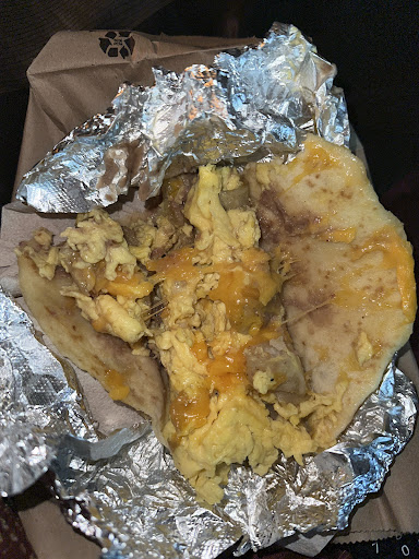 Stopped in for breakfast and ended up with two bacon and egg tacos and one with egg and another type of meat. Didn't realize how big they wereāI definitely got more than I could handle! I managed to finish one bacon and egg taco and the other meat and egg one, and both were delicious. The eggs were cooked just right and paired perfectly with the meat.