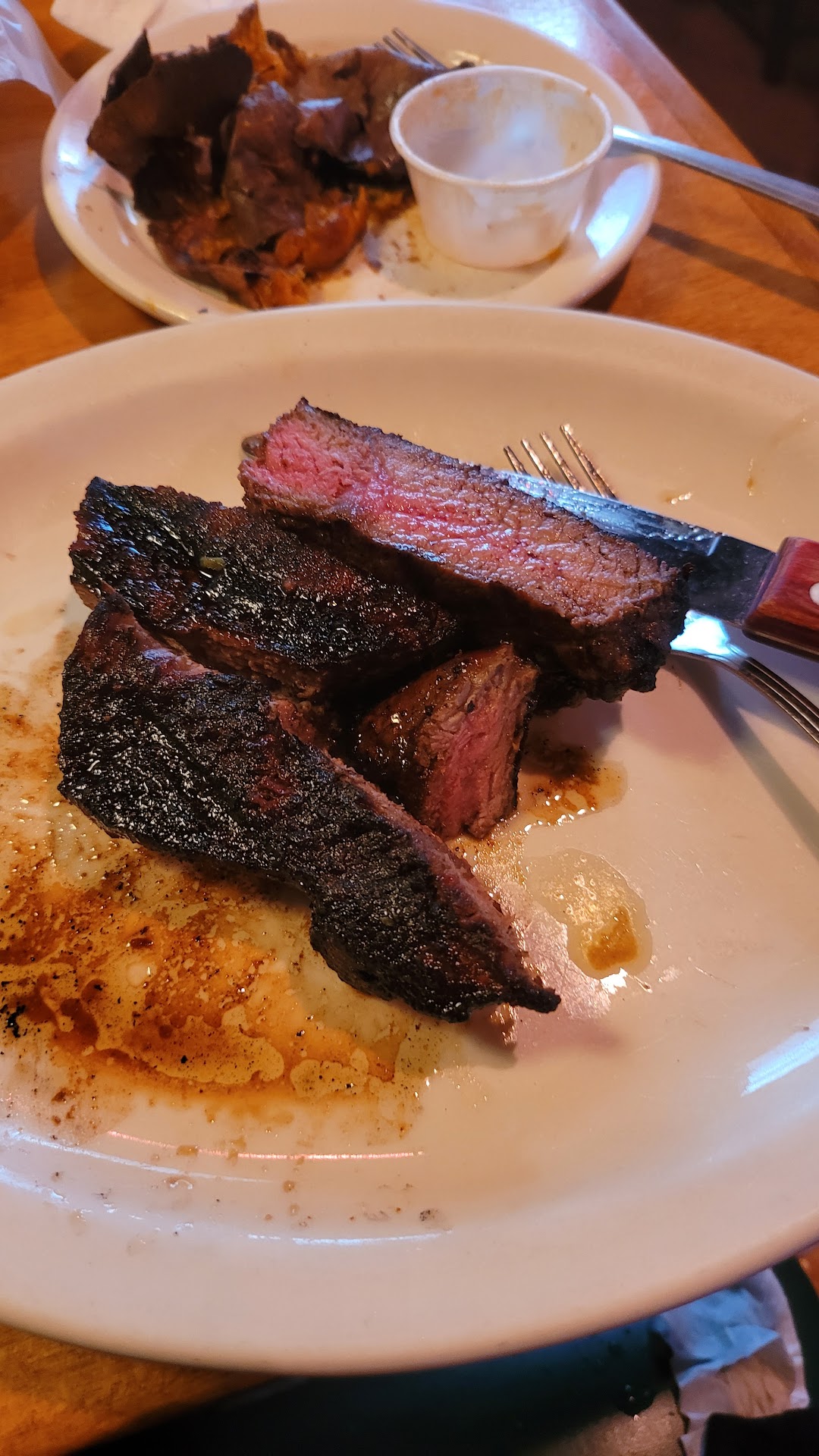 Ā Ā Ā Read moreThe worst, absolute worst service I have ever received at any restaurant, when it comes to food and seating. The wait staff was Spot ON!, but everything else was extremely poor and bad. We decided to eat here for Mother's Day. Our experience at this establishment was as follows. When we entered the door we had reserved a spot for 7 and was not informed until we arrived that they could only seat 6 of us due to restrictions, we were seated at 2 different locations and when we asked to be seated next to our party we were advised that we could not, which of course escalated to a conversation with the manager.. we asked to move and they complied however at this point we were seated in a location that was under the air as well as a constant drip from the ac unit which was showering my mother-in-law, then of course me when I switched seats with her. When we ordered this brought other issues, from not having "Steak bites" for the 2 children in our group as well as myself ordering the 11oz sirloin, well done, with a side of Broccoli and loaded sweet potato. When I received my order it was rare to the point I sent the steak back. When I finally got my steak which was of course after everyone finished, it was burned on the outside and very bloody in the middle. At this point I asked to just have the meal removed so we could pay and we could leave. This place was dirty with buzzing Nats flying everywhere as well as water leak from what I can only imagine was the A/C and hopefully not the sewage return. I will never return to this establishment as well as advise everyone I know of to stay as far away from this location as possible. In the end the kids got the smallest steaks they had and cut them into, you guessed it, Steak bites as well as everyone eating mostly correct orders and myself eating a decent order of broccoli and a loaded sweet potato. All in all we all tried to make the best out of this Mother's Day meal, well except for myself who will be stopping on the way home for a burger. BTY the picture attached below is after sending it back, not sure if you can see but there is still blood coming from this steak as well as the chard...