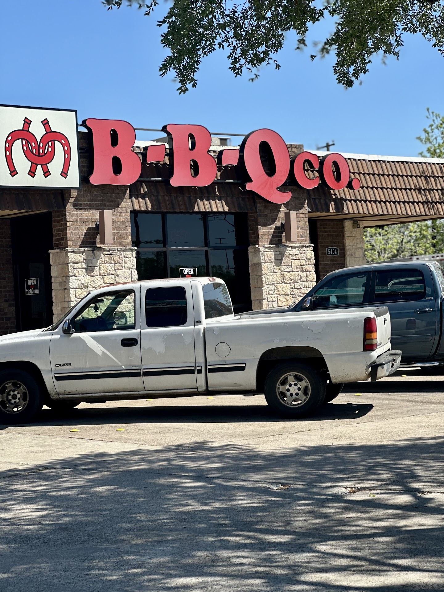 Three stars is not a negative review! Just getting that out of the way. This is a run of the mill texas bbq joint, its everything you'd expect. Nothing bad here taste wise. Standard bbq experience smoked chicken is tasty, brisket has a nice smoke ring, but lacks a robust bark. Pork ribs nice and fatty , I will say the ribs were cooked to perfection. They are not fall of the bone but supply and pulls away easily. Sorry to break it to you home pitmasters but fall off the bone is over cooked on ribs. Dont take my word for it though ask any comp bbq pitmaster. Sorry I got off track there, ribs here cooked perfect, nice rub as well. As for side I only tried two but there were alot, the usual suspects and some I'm not used to seeing. I got the roast potatoes which i hardly ever see at a bbq joint. They were great. My other side was the pea salad. While it is the usually recipe theirs had a more acidic bit to it, maybe vinegar; im unsure. Needless to say this little twist was amazing and brought a brightness to the dish that I'm not familiar with. I really enjoyed it. I didnt really try the sauce, but I appreciate that it came on the side. All in all good bbq, cant really fault them for anything. The atmosphere was unique and I enjoyed it. Foreign and domestic currencies framed on the wall. Look for the national park two dollars Bill's. I have never seen them before and they are very cool. Replica antique, or real lol; on the walls aswell. Just a neat little dining area that's made diffrent by the cool Bill's all over the back. I will say the tv was a little...