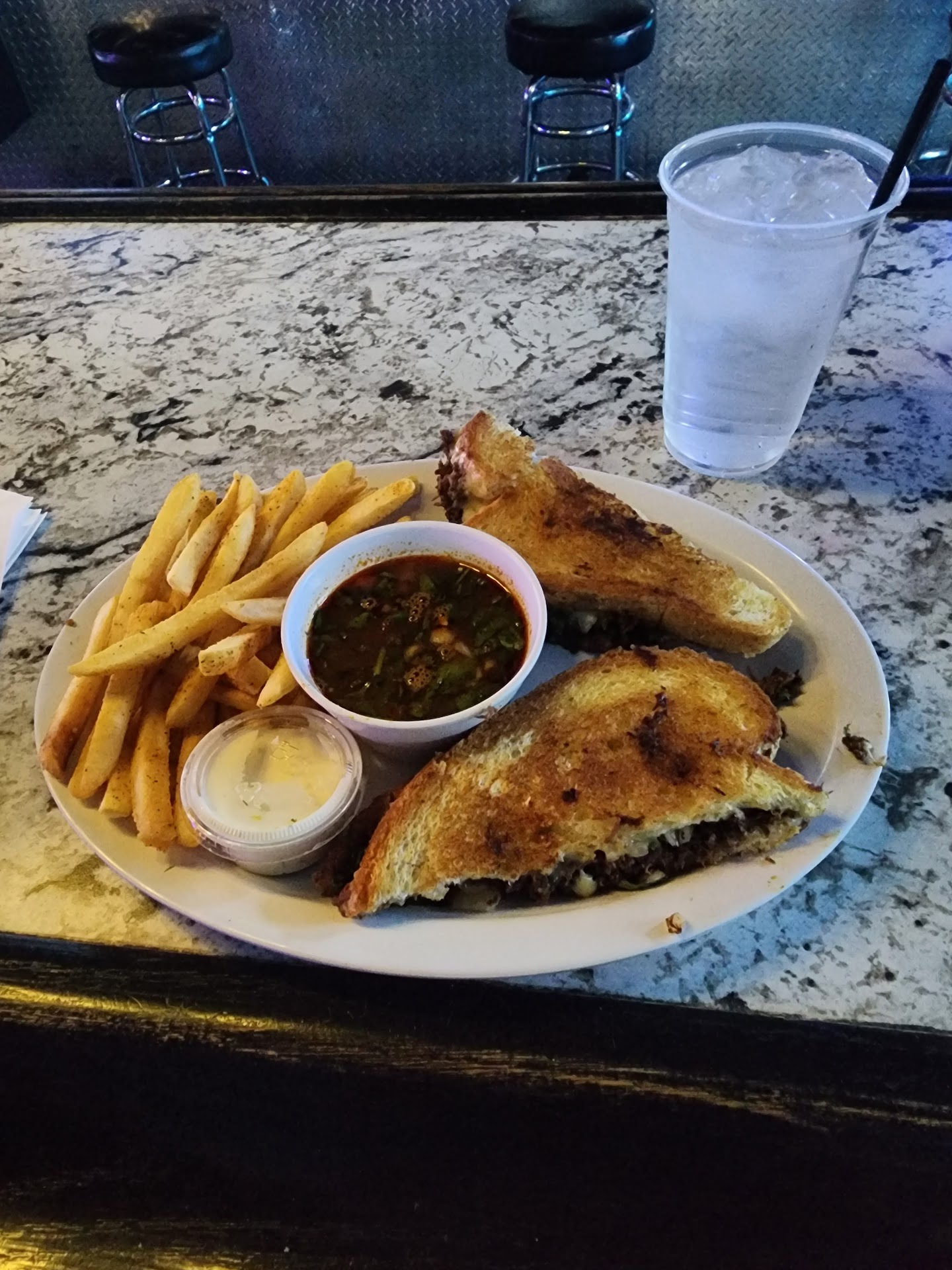 Read moreCONS: • Obscure location, off the main drive. •Not situated in the nicest part of town (imo) •Untidy outdoor environment at times. • Patio seating and tables somewhat run down or in dis-repair. •Could use a bit more air-conditioning in the dining room. •The men's restroom needs some help! •Not family friendly (21 and over only)
