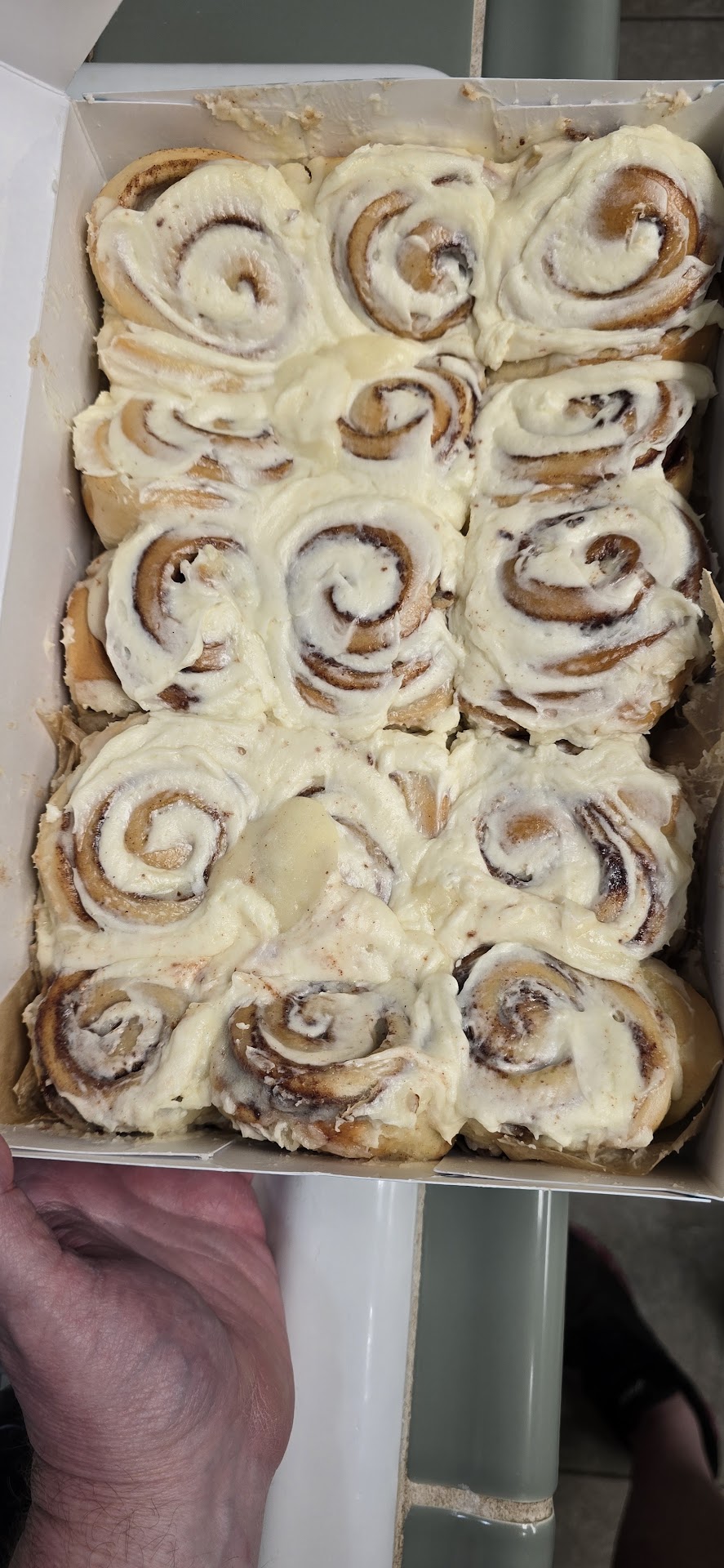 Counter-serve chain serving cinnamon rolls plus other baked goods & specialty frozen beverages.