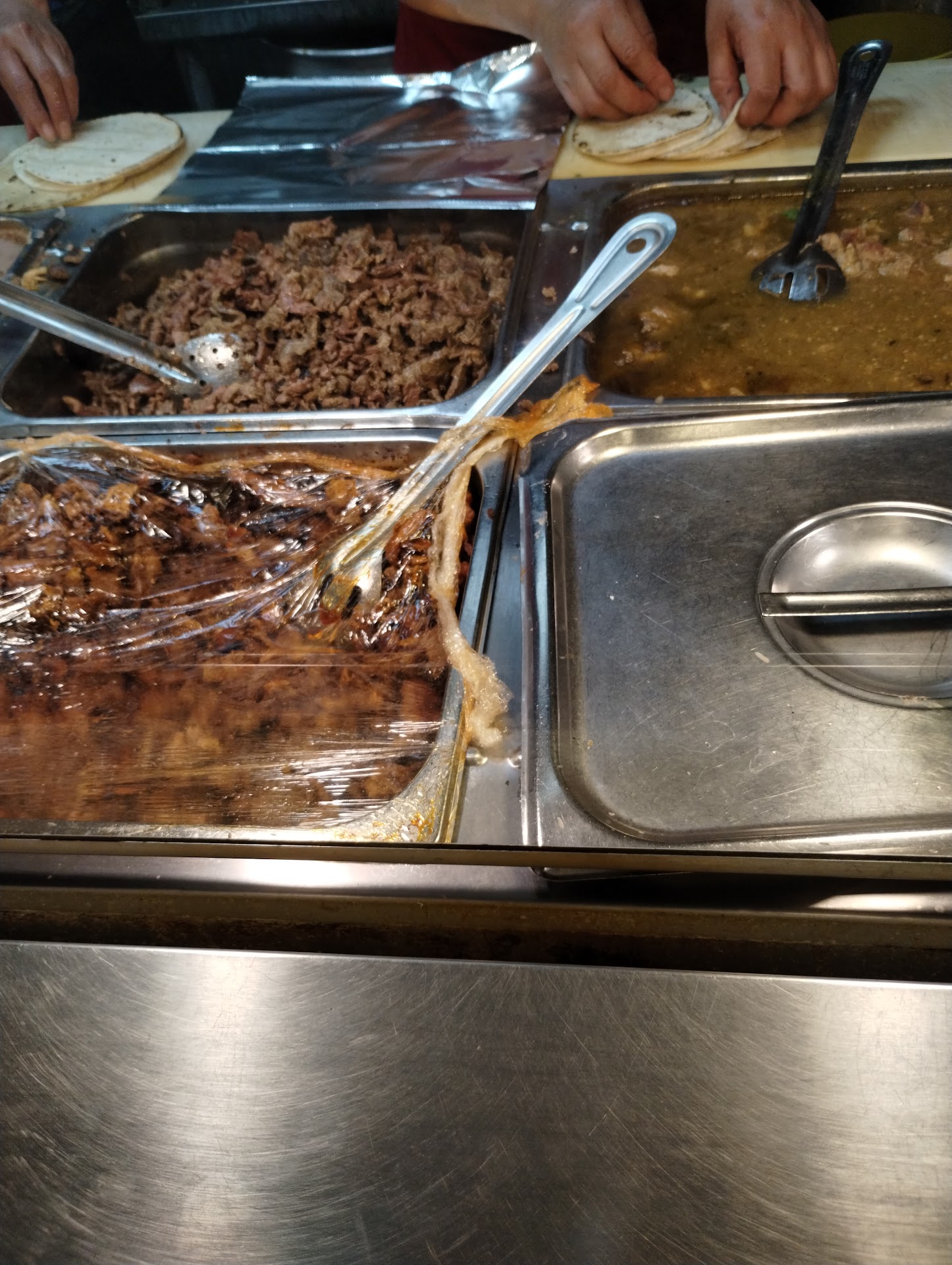 After fighting through the zombie apocalypse of homeless people asking for money or food (while they already had food in hand) someone actually followed us into the store asking for us to buy him a taco and giving no personal space. Which was already weird for our first time there. THE WORKERS ARE SWEET KIND HELPFUL PATIENT AND THE LINE IS LONG we got tacos tamales and burritos and would only say everything needed salt BUT FOR PEOPLE WHO HAVE TO WATCH THE SALT INTAKE this place is for you since salt and seasoning is a personal taste. The serving size is GENEROUS just lacked flavored but GREAT PORTIONS.