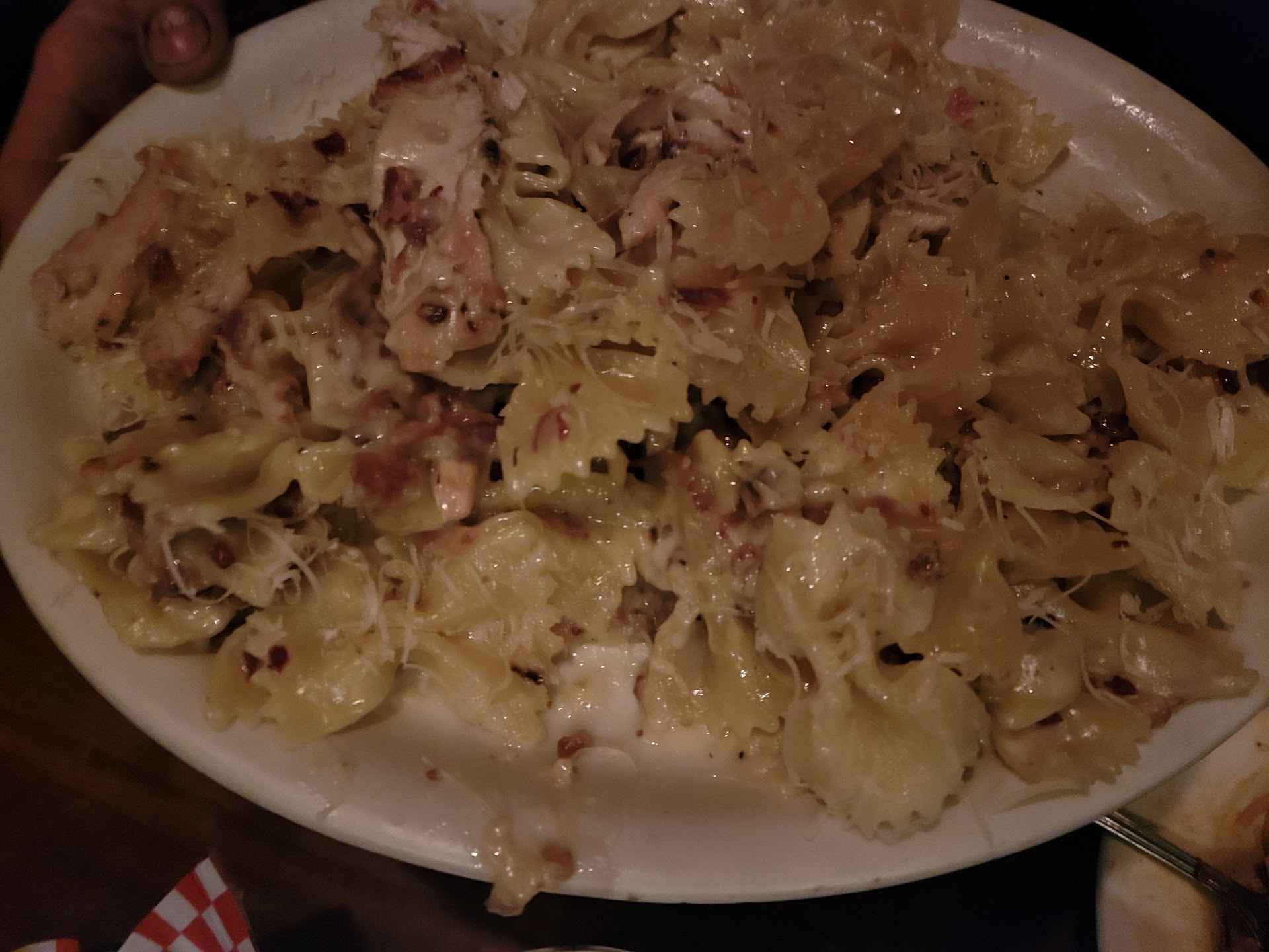 My daughter ordered the bowtie pasta with Alfredo sauce and she commented that it was good, so I tried a bite of it. Not only was the temperature perfect but the Alfredo sauce had great flavor.