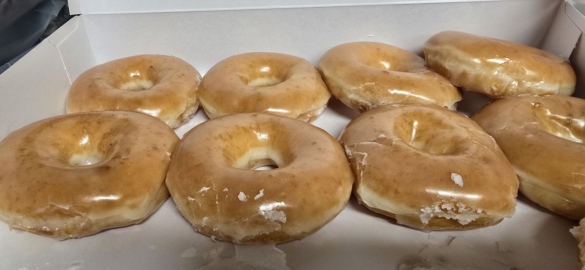 Never got the massive hype when Krispy Kreme Doughnuts was at it's peak (early-mid aughts) but that's simply because I hadn't yet tried their products. And after I'd finally gotten around to doing so, while I certainly DID get it & LIKED them, until recently, I'd never actually went out and bought any..... until recently. Happened upon their site a few months back, when researching reviews for nearby doughnut shops, as the wife & kids had a craving & asked if I could go pick up a dozen somewhere. Saw they had a promotion/sale, so decided to take advantage. Wound up registering for their "Rewards Program", as well, I downloading the app. I appreciate a good offer/sale & Krispy Kreme does not disappoint, in their frequent offerings. I've only ever purchased from my local Victorville, CA location & can't see going anywhere else. The place is ALWAYS SPOTLESS/CLEAN, the staff is ALWAYS helpful, courteous & fast at tending to customers & helping us get on our way. Given the current pandemic/COVID situation, I also (VERY MUCH) appreciate the safety protocols they have set in place (as well, the prevalent signage they have displayed) which, imho, clearly demonstrates their awareness/mindfulness and commitment to doing their part in protecting both, their customers and staff, (which, to me, is of MASSIVE importance). While I, PERSONALLY, feel said protocols to be effective, by comparison, their not as intrusive nor as limiting (and thus, inconvenient) as other businesses (such as my bank, who's name I'll not specifically reference, but I feel has gone overboard in their practices/implemented protocols, to the point that, in addition to making it nearly impossible for me to actually visit during -new, limited - business hours....and, even on the rare occasion I am able, I simply don't want to as, between the RIDICULOUSNESS of said protocols, the fact that ANY/ALL transactions I need to see a teller for tend to take FOR-E-VER and the fact that I feel like I'm actually put at a significantly higher risk of exposure, while lined up with ALL of the other customers like cattle for what is ALWAYS an obscenely EXTENDED period of time.....but, that's just mho & because of that, my hat's off to Krispy Kreme for their more accessible, but equally - if not BETTER - approach to limiting the spread of COVID). So, a DEFINITE 5 STARS to my local Victorville, CA Krispy...