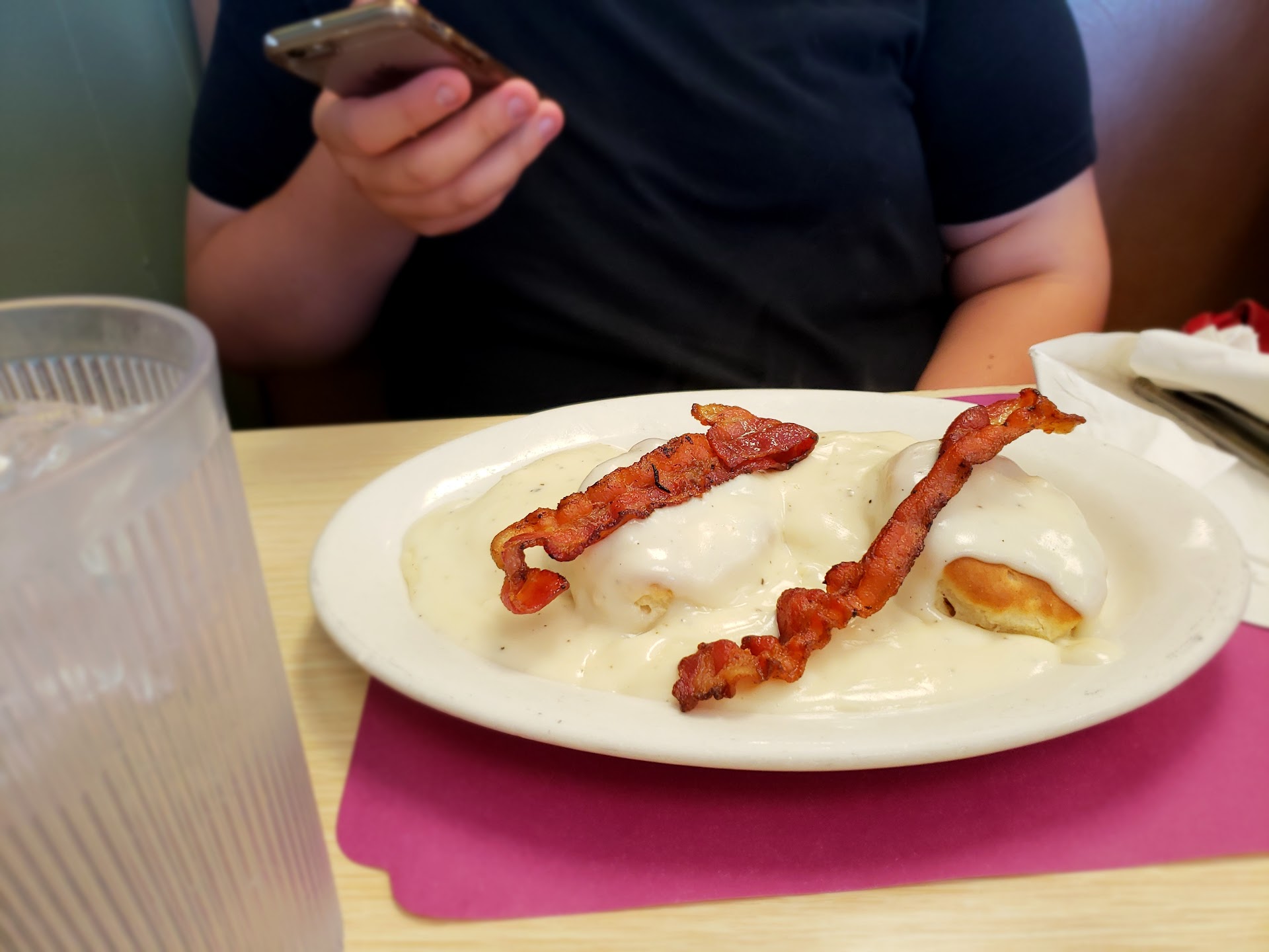 I chose the standard bacon/sausage & eggs with hash browns and English muffin. They offered banana bread, corn bread or biscuits & gravy. I opted to have half sausage half bacon. Eggs were cooked basted and perfectly done. Hash browns were crispy on the outside, but still soft on the inside, as I like them. Some places crispy the so much that there are no more potatoes, or don't crip enough so they are soggy. These were perfect. I am allergic to the pepper that most places put in sausage and everything to spice it up. I was pleased to find the sausage flavorful but not spicy.
