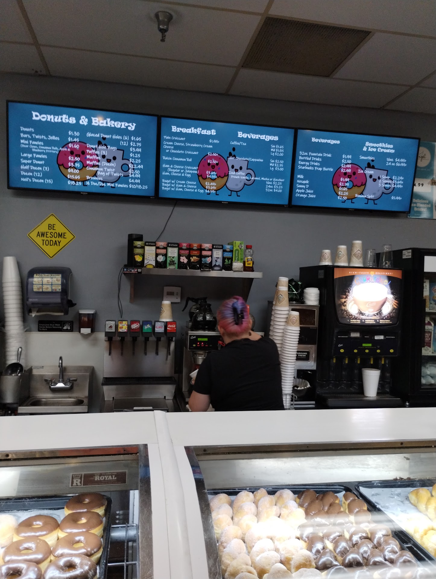Just went to Neil's donuts for the first time, I was looking for ice cream at an ungodly hour of the night. Not only was I met with a scrumptious aroma of donuts, a very bright welcoming color palette that I unfortunately did not get a photo of. I was greeted by a sweet lady named Nora, she was very friendly :-) and a joy to wake up to. I ordered some donut holes a couple regular donuts and the price was very fair I felt. I went in hoping my card would work, but it didn't. She was sweet enough to accept the full balance in change, which I had in the form of rolled nickels. thank you Nora, I also noticed how you spoke in the form of we's and I's, when talking about the products, this makes me think either you are part owner or you really care about the donut shop that...