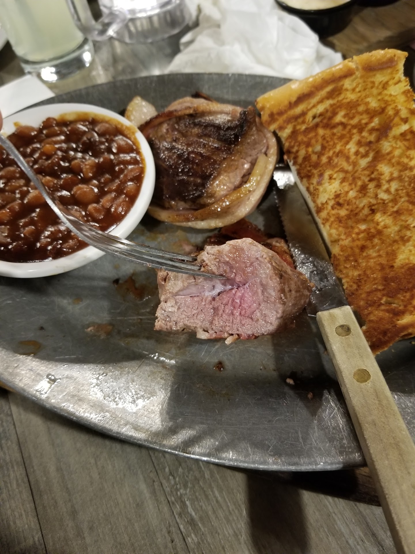 Read moreThis place has a great atmosphere and country feel and hometown feeling. However, Kimberly are waitress, was very rude and would almost ignore us whenever we wanted anything. And I ordered the rib eye medium rare and they brought me out a sirloin that was well done and I told them hey, this is well done and way overcooked and this isn't even a ribeye at all. And then she continued to argue with me to tell me that this is definitely a rib eye, but I can easily tell the difference between a ribeye and a sirloin that was very grainy and non-marbled. This is how I knew that it was the wrong cut. However, they did take it back and make me another one. However, everyone had finished eating and was ready for the check before my new steak came out and when they brought out the steak this time not only was it still overcooked it was also the wrong cut again so I decided to go ahead and eat it. I was not offered a discount or anything like that and the lady that charged the bill. I had asked for a split check because I was with a large party and would like to have my bill on separate. She handed me my bill and then added my bill to the group one as well and was almost double charged for a steak that wasn't even any good and was cooked improperly and was of the wrong cut. I'm highly disappointed with the service here, however the beer was really good. That's about it. I've had good experiences here before but that was before the pandemic. I have a feeling that they were probably just out of rib eye and we're serving sirloin as though it was rib eye at a marked up rate which I find very terrible. I was highly dissatisfied and really disappointed that that was the stake that I received. I'm not sure if I'll be going back unless the owner reaches out to me and gives me a meal on the house because this is just ridiculous. I was double charged for something I didn't even get the proper...